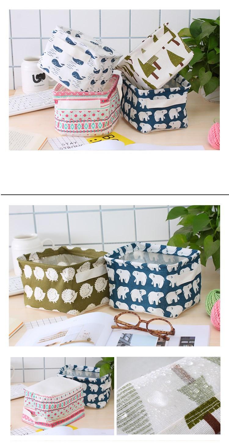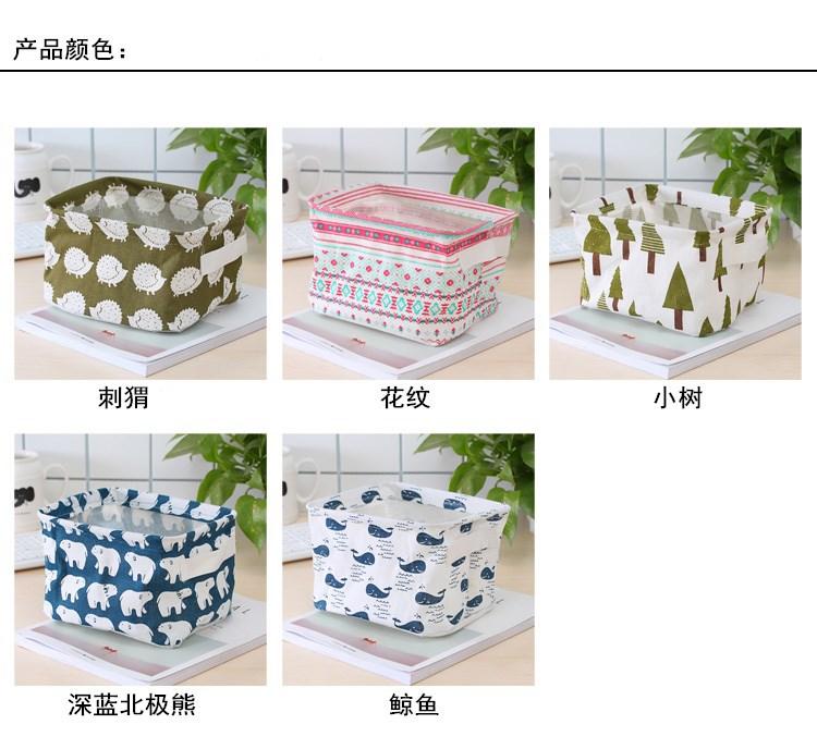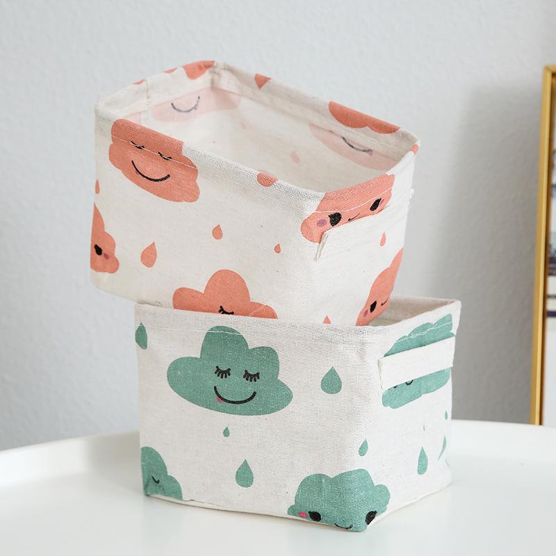 Desenhos animados algodão fresco e linho com alça Desktop Sundries Cesta de armazenamento caixa armário roupas pequenas cesta de armazenamento de tecido