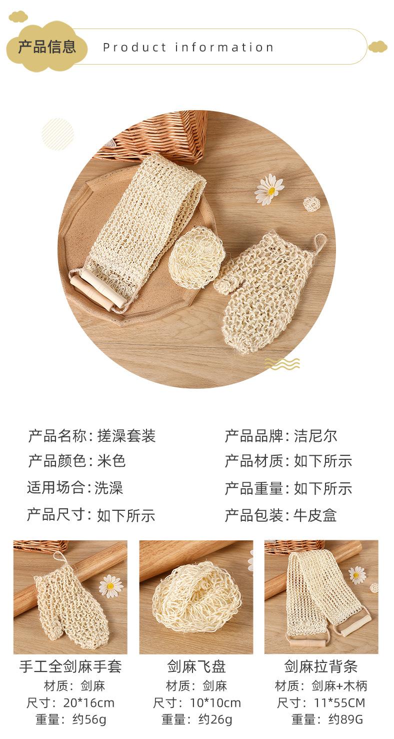 Série para banho Conjunto de banho de três peças luvas domésticas toalha de banho tira de sisal para as costas sisal frisbee roupa de banho