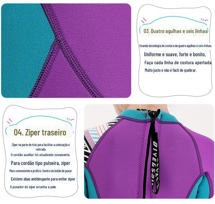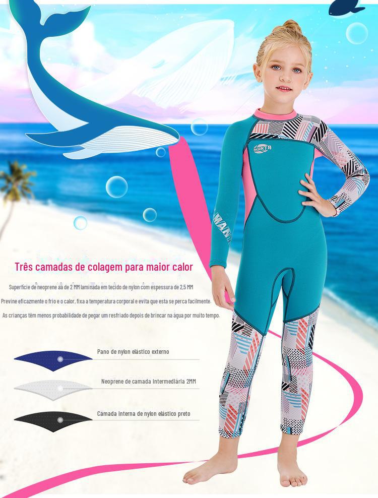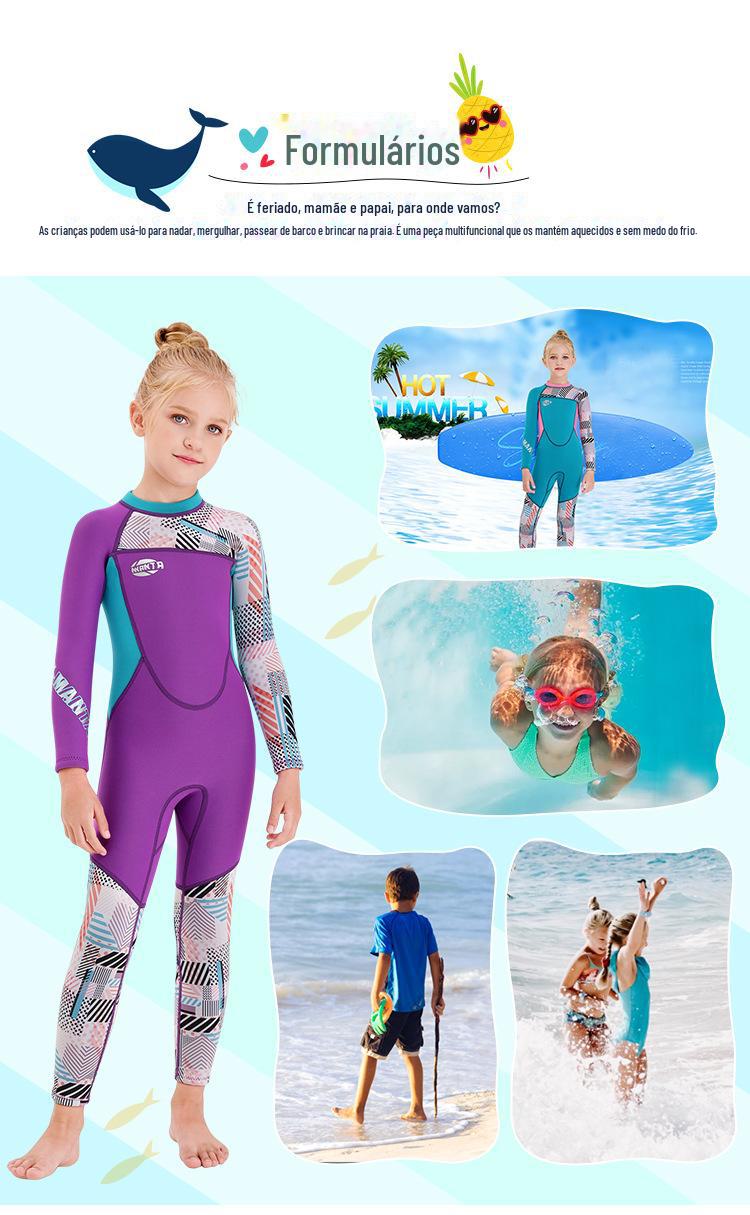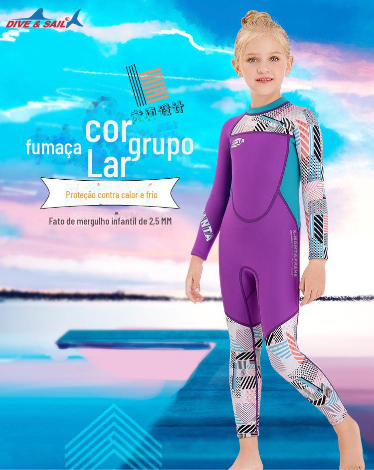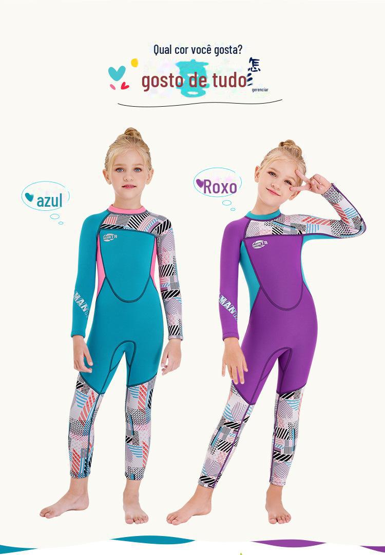 Novo Swimsuit Infantil Warm 2.5mm One-piece Diving Suit Mulheres de mangas compridas outono e inverno à prova de frio Snorkeling surf Jellyfish terno