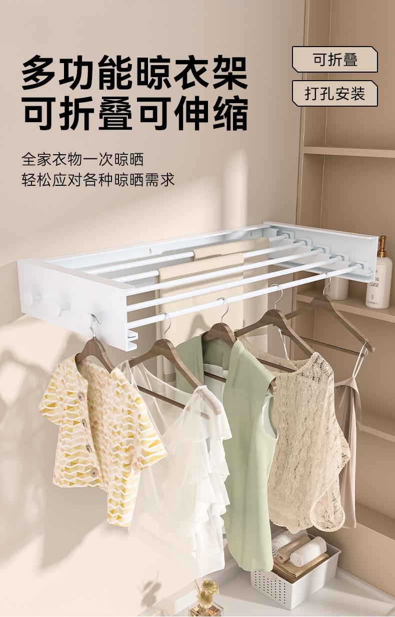 Varal de secagem telescópico dobrável invisível para varanda, banheiro, parede, roupas penduradas, artefato, varal de secagem multifuncional oculto