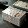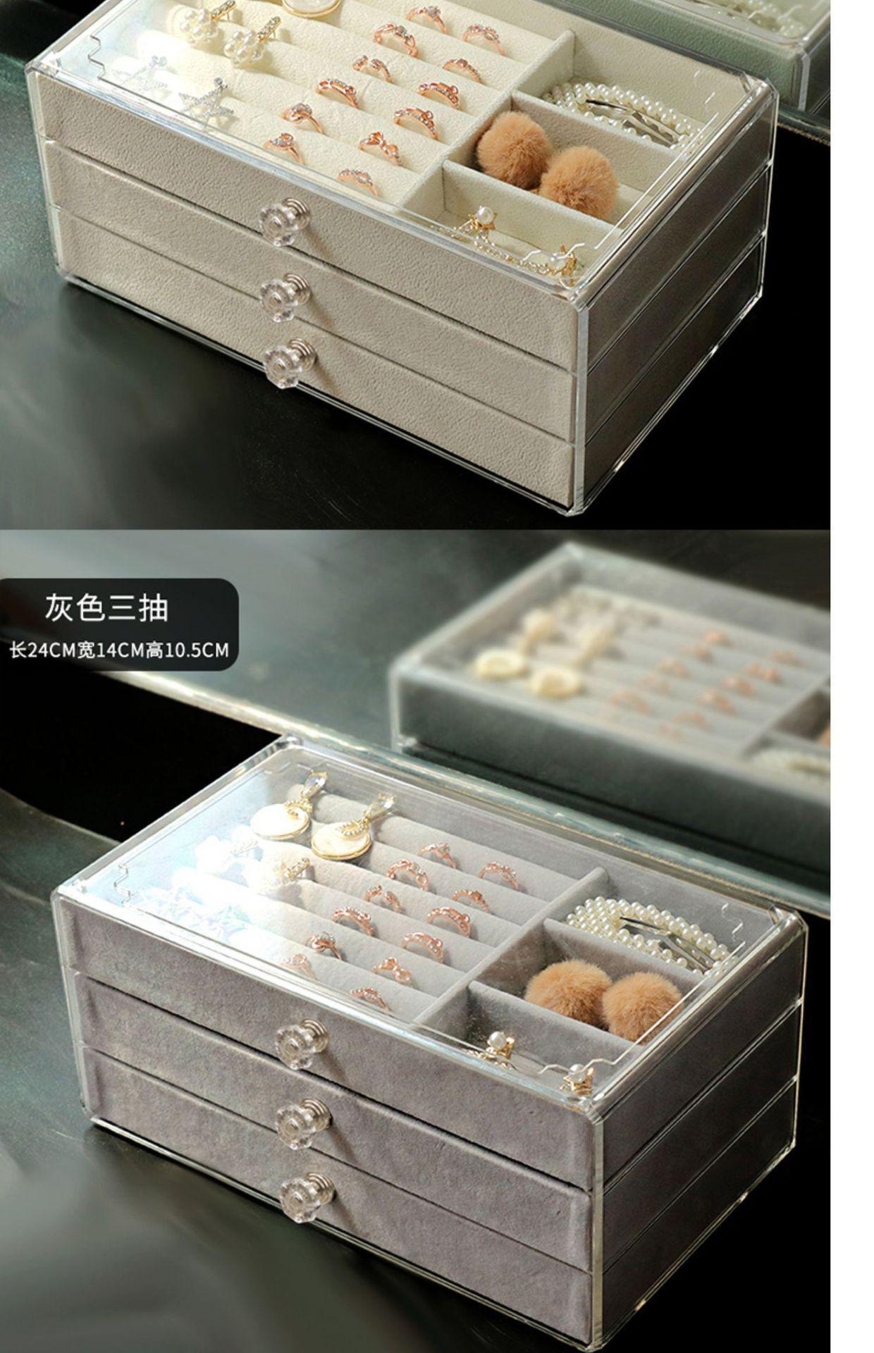 Nova Caixa de Joias Exquisita de Três Camadas Tipo Gaveta Transparente Organizadora de Anéis Brincos Brincos Caixa de Armazenamento de Joias em Estoque