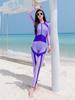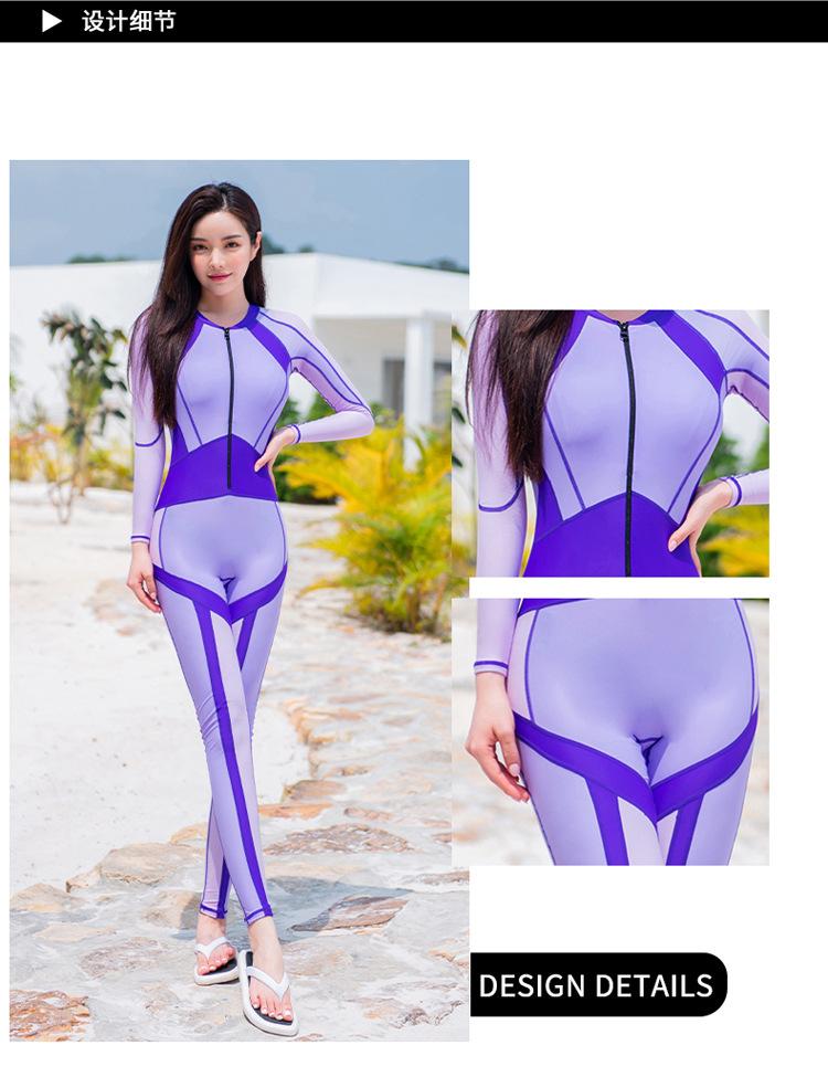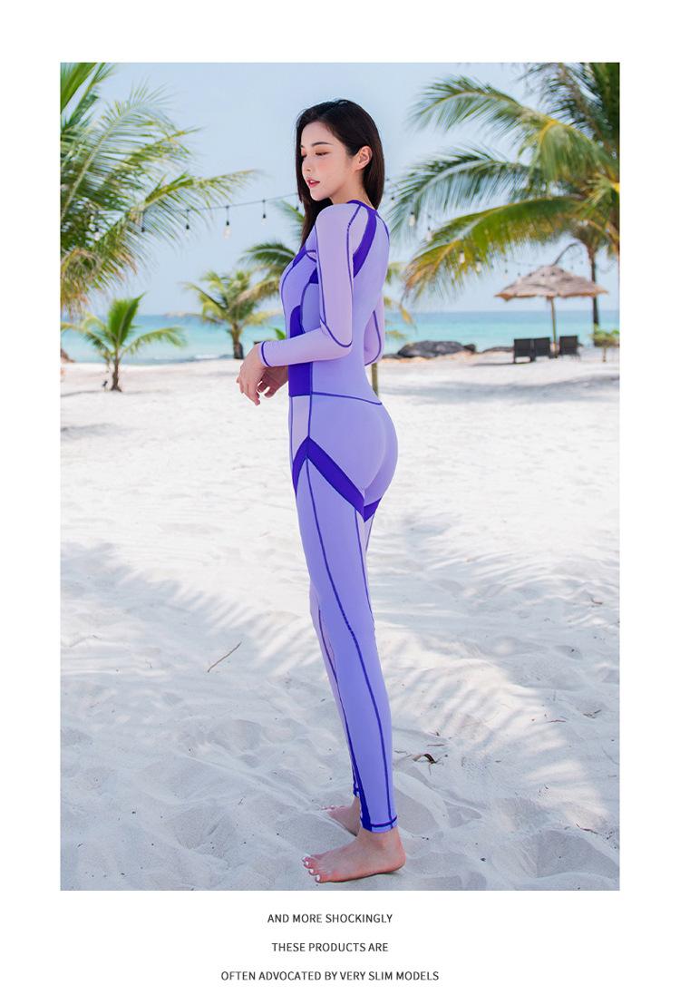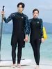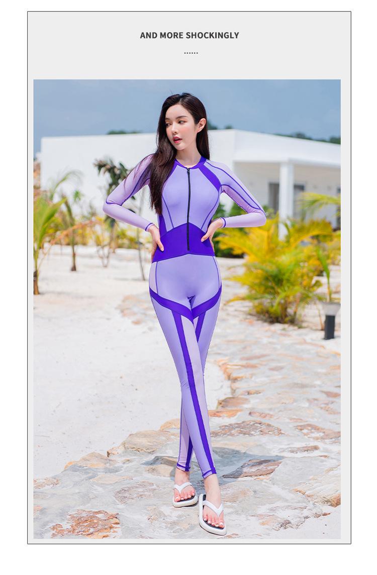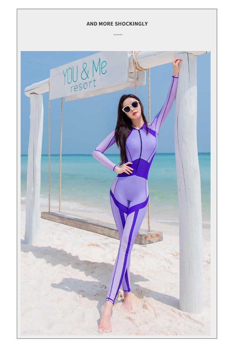 Roupa de Mergulho Coreana Nova com Cores Contrastantes Feminina Manga Longa Calça Comprida Maiô de Uma Peça Conservadora Secagem Rápida Roupa para Surfe e Snorkel Atacado