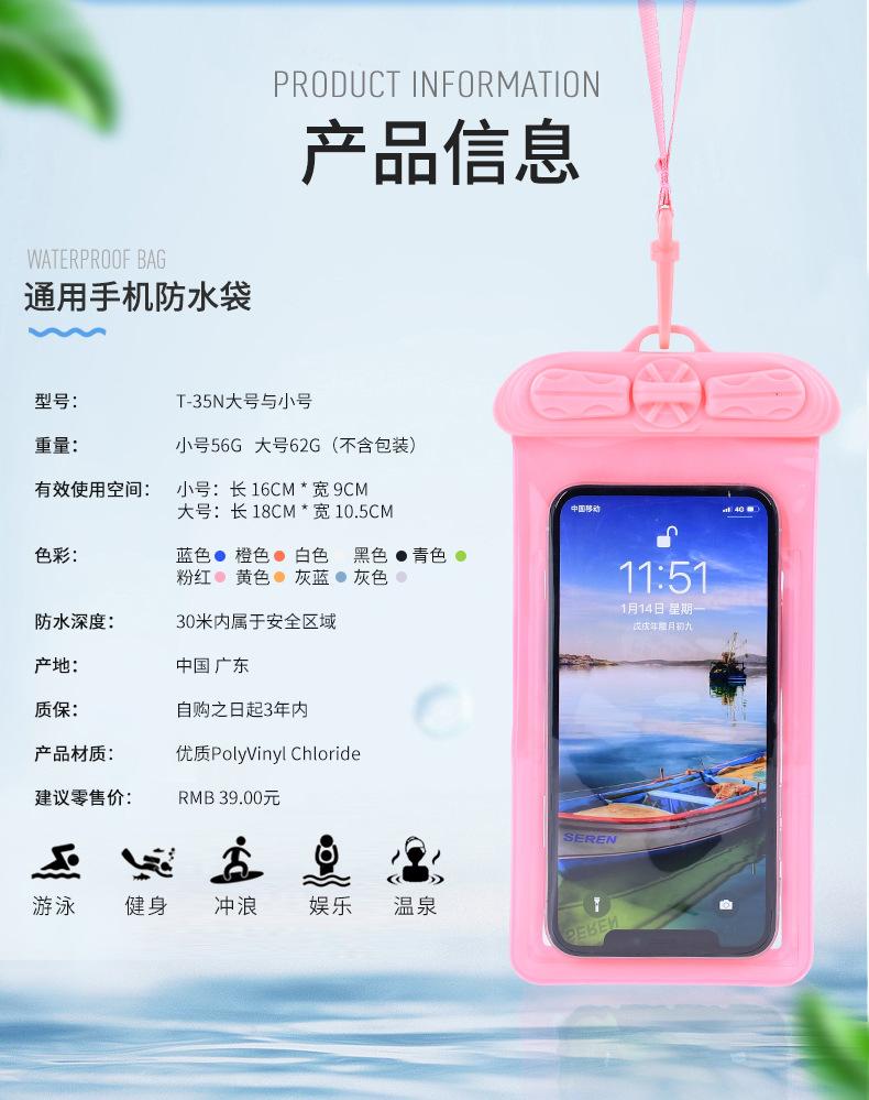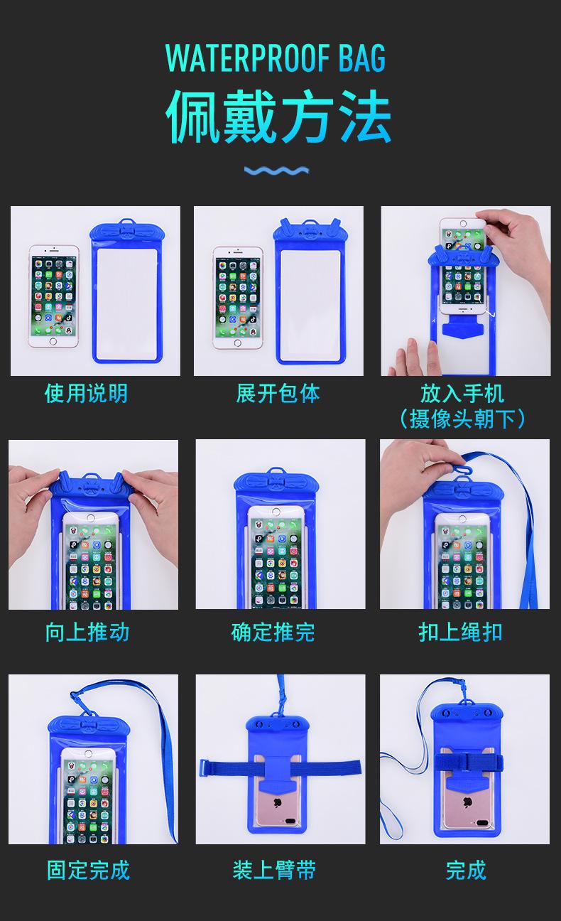 Nossa fábrica também produz bolsas multifuncionais para artigos diversos à prova d'água, caixas à prova d'água para câmeras, bolsas para braços à prova d'água, bolsas para cintura e outras bolsas à prova d'água. Os produtos podem armazenar alguns pequenos objetos de valor para evitar areia, poeira e água ao flutuar e nadar à beira-mar. Ambiente de uso: deriva, mergulho com snorkel nas Maldivas, natação, esportes de campo ao ar livre, chuva, viagens à prova de chuva... Adequado para iPhone 8 Plus, Samsung Note3 e outros telefones celulares de tela grande.