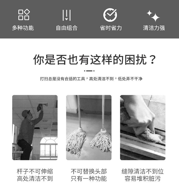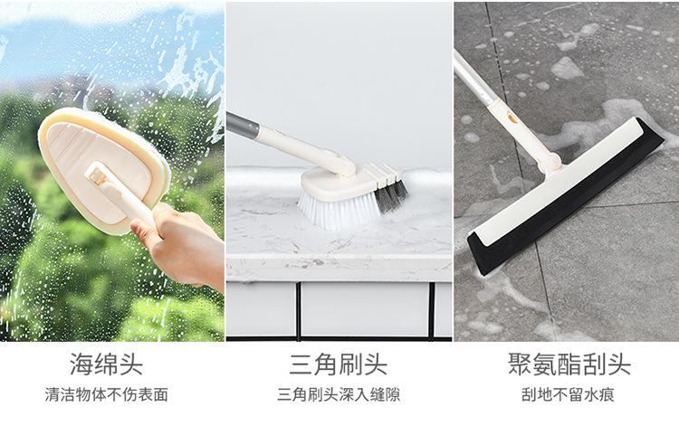 Four-section universal aluminum rod, (Replaceable head) bathroom floor brush, (Replaceable) cleaning broom hea...