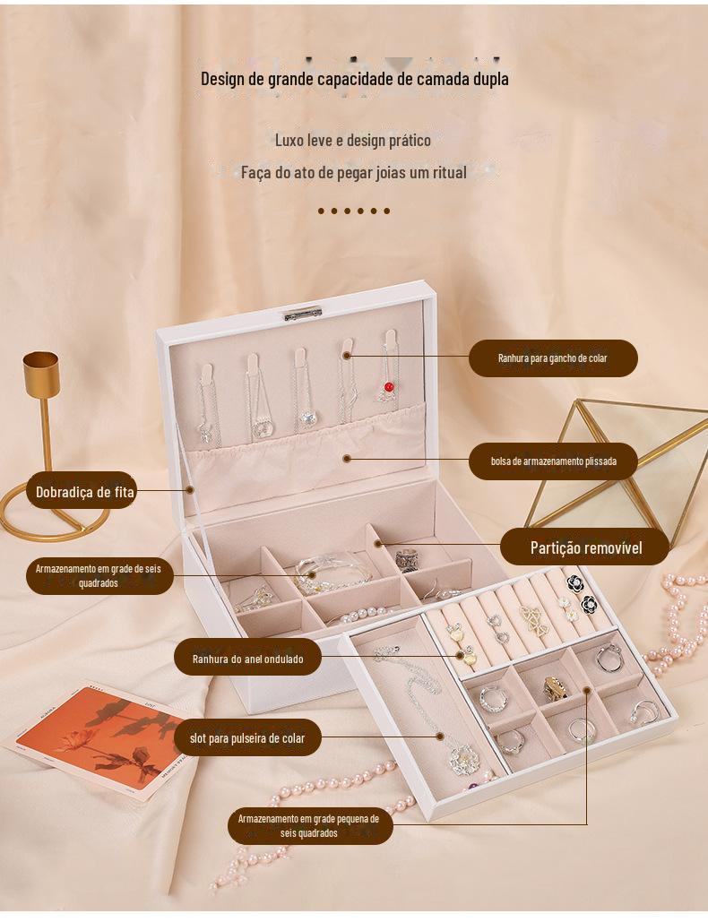 Caixa de armazenamento de joias high-end requintado de camada dupla leve luxo 2023 novo colar pulseira joias unhas brincos caixa de coleção