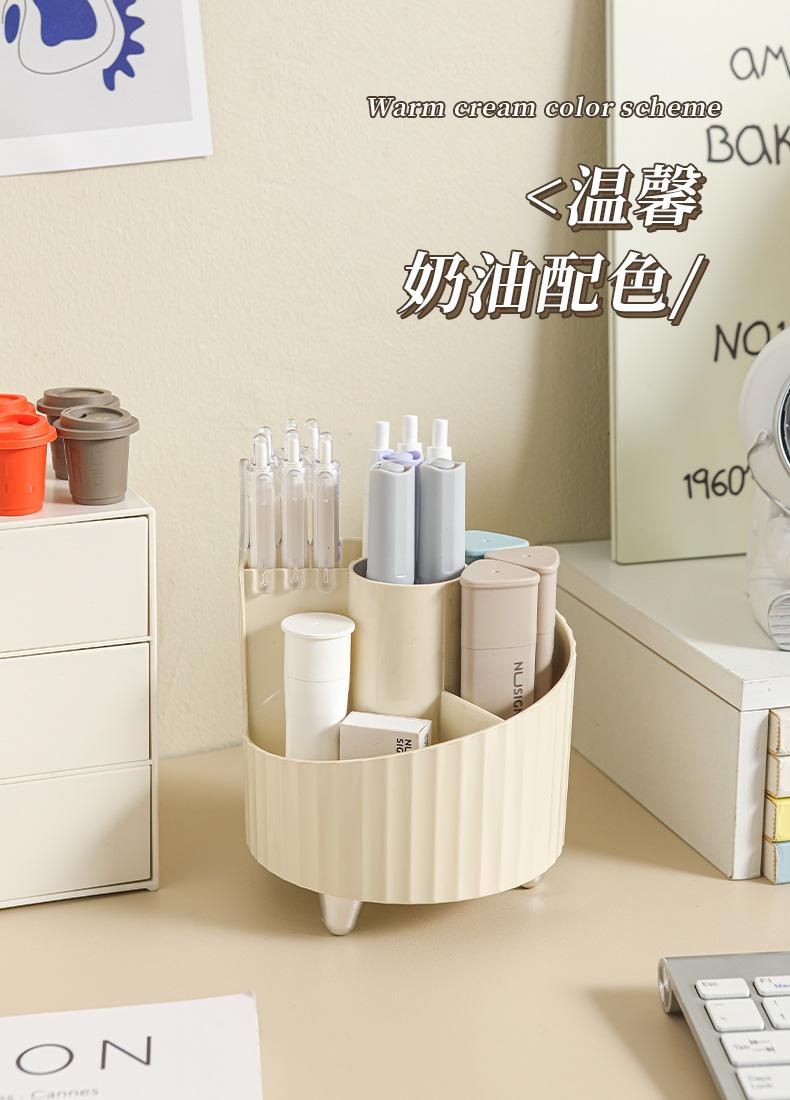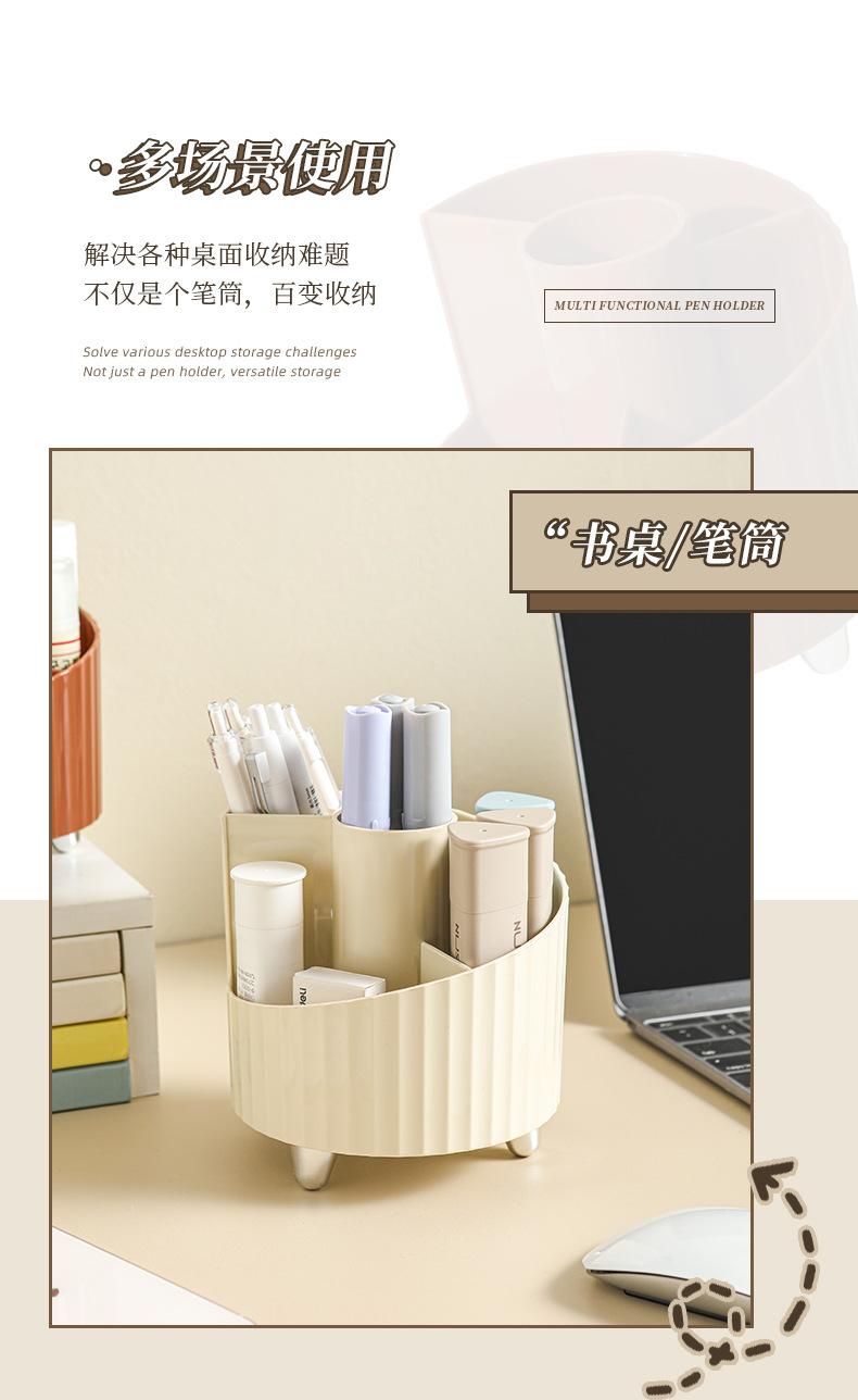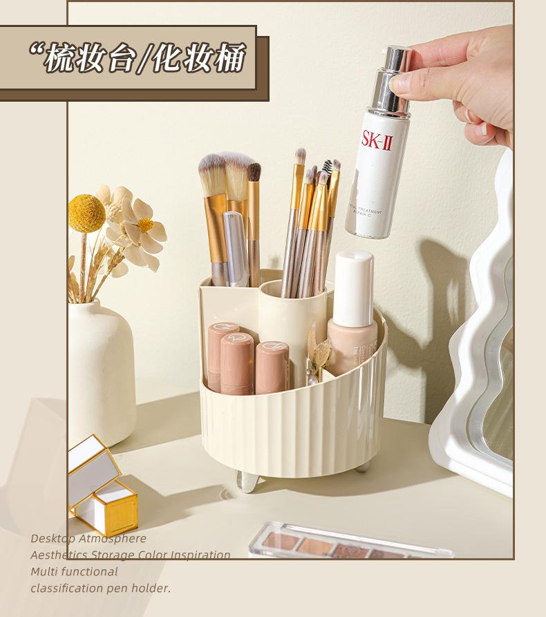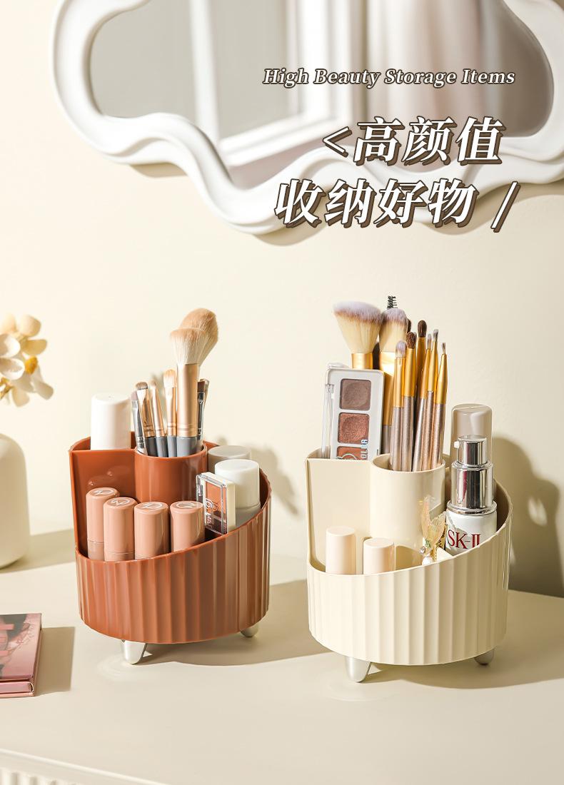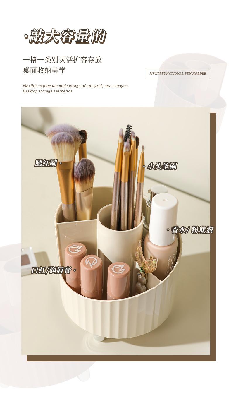 Caixa de armazenamento cosmético Rotating Pen Holder Dressing Table Desktop Grande Capacidade Maquiagem Pincel Batom Sombra Pó Puff Storage Rack
