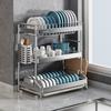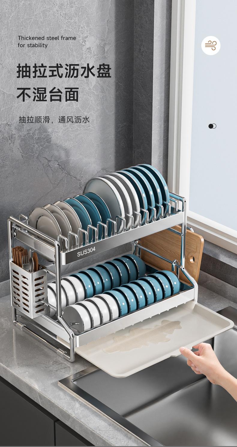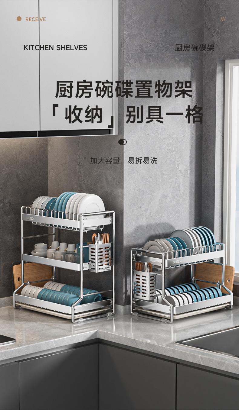 Aço inoxidável Prato Prateleira de armazenamento Dreno rack tigela Chopsticks tubo rack cozinha rack multifuncional bancada multi-camada Plate Rack