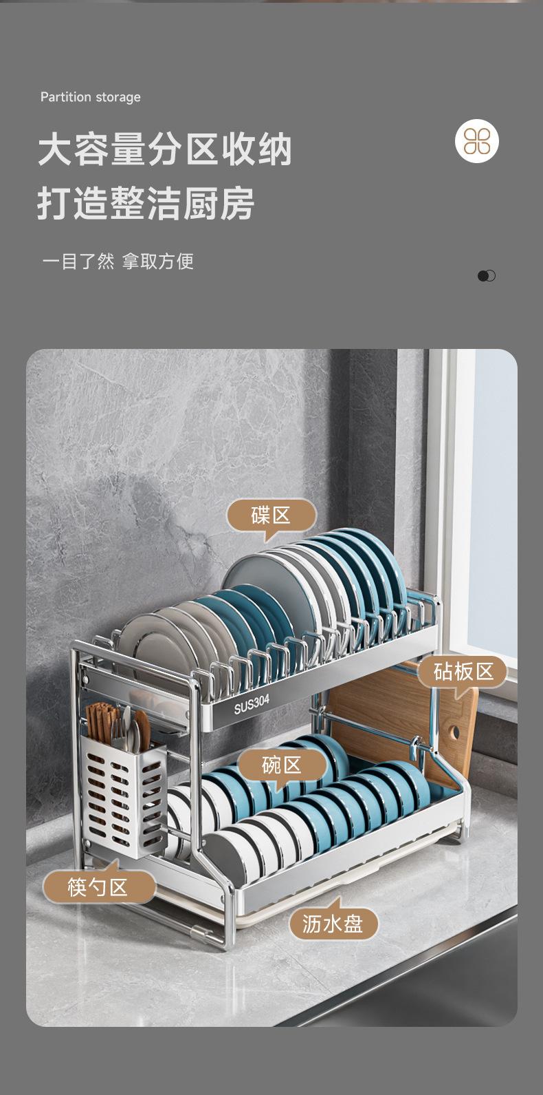 304 Stainless Steel * ins Bowl and Dish Rack 2 Layers Main Rack Chopsticks Holder Chopping Board Rack