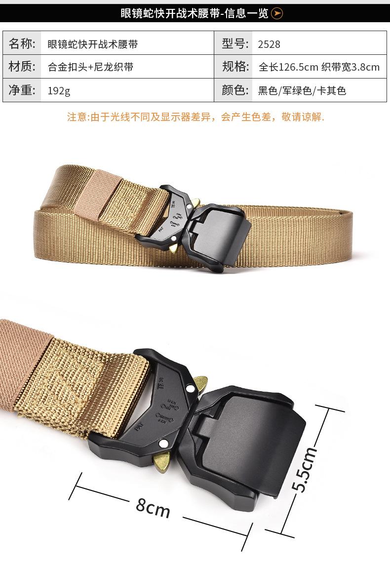 Fivela de liga cinto de nylon ao ar livre cobra lona calças esportivas cinto macacão masculino cinto tático