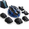 Black and blue line helmet + blue bull head protective gear + hip protection