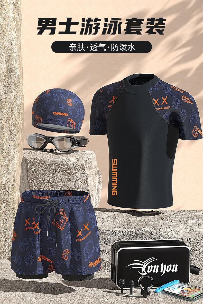 Swimwear Masculino Profissional Anti-embaraço Tamanho Grande Solto Dupla camada Swim Shorts Protetor Solar Hot Spring Full Body Masculino Swimwear Terno