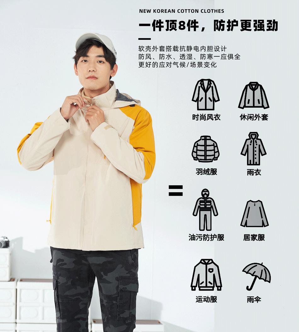 Compre Macacão de montanhismo externo três em um, à prova de vento, à prova d'água, destacável, de duas peças, para homens e mulheres no atacado no Joom.pro