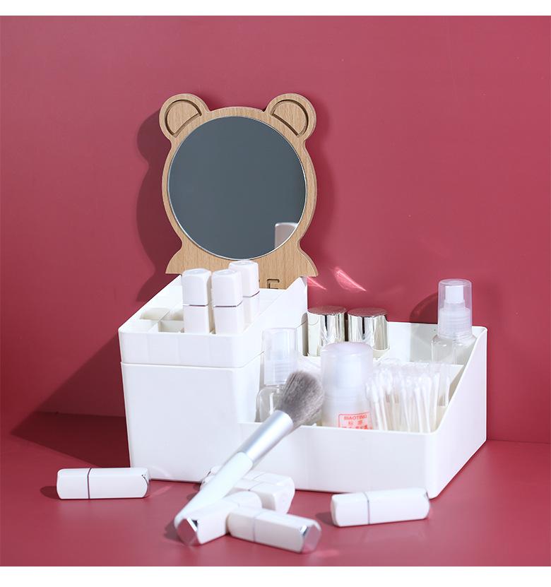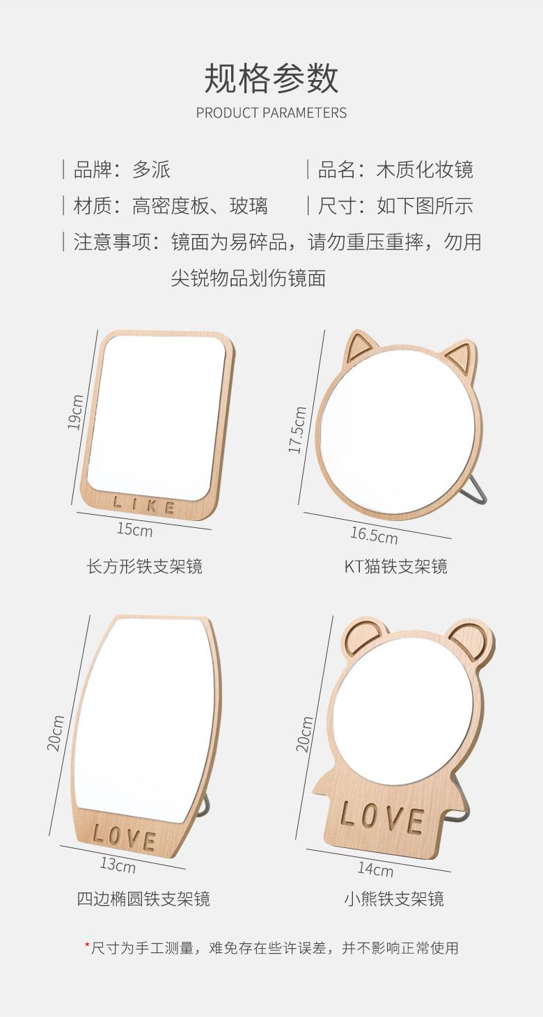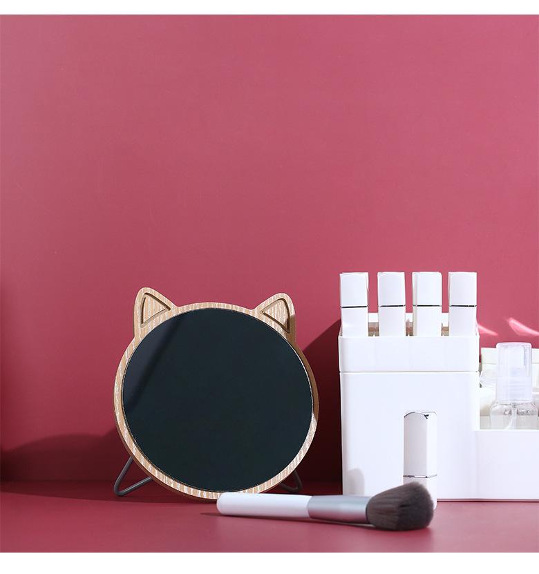 Ins Espelho de maquiagem de mesa de madeira simples Espelho de princesa para dormitório Espelho de mesa ajustável para vestir Espelho portátil para estudantes