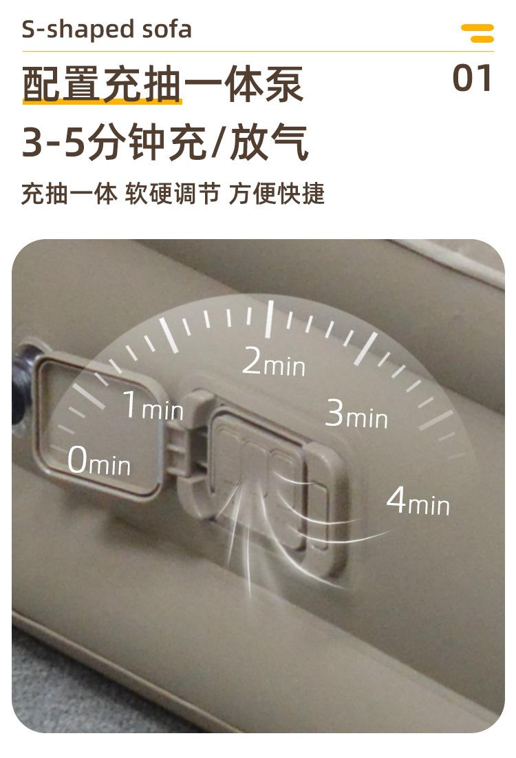 Khaki s-shaped automatic sofa (5th generation pump with light)