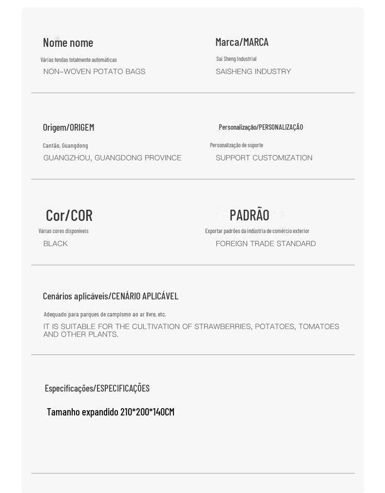 Especificações do produto
