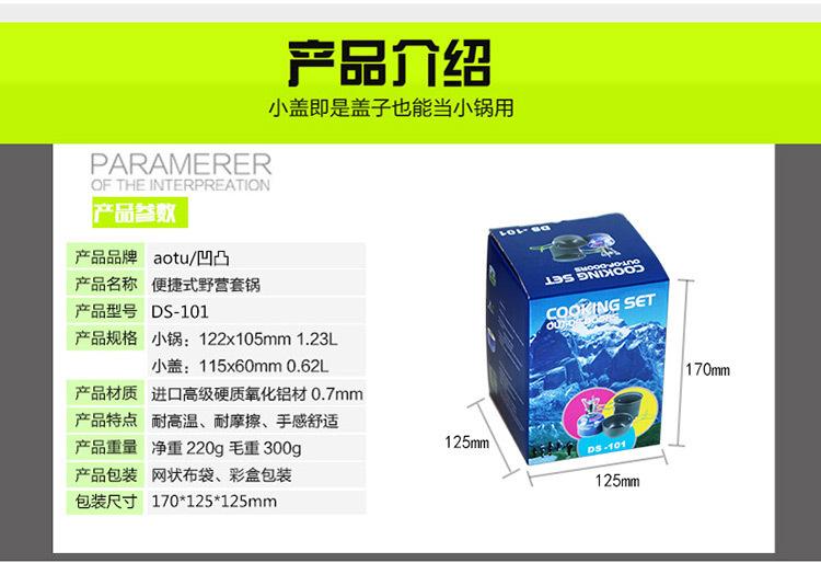 Conjunto de panelas: panela pequena Especificações: 122x105mm (diâmetro inferior*altura) 1,23L Peso: 87g