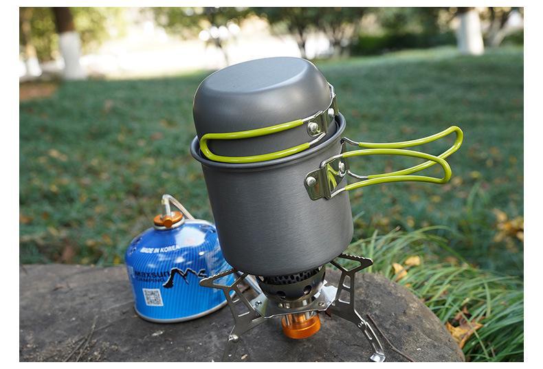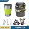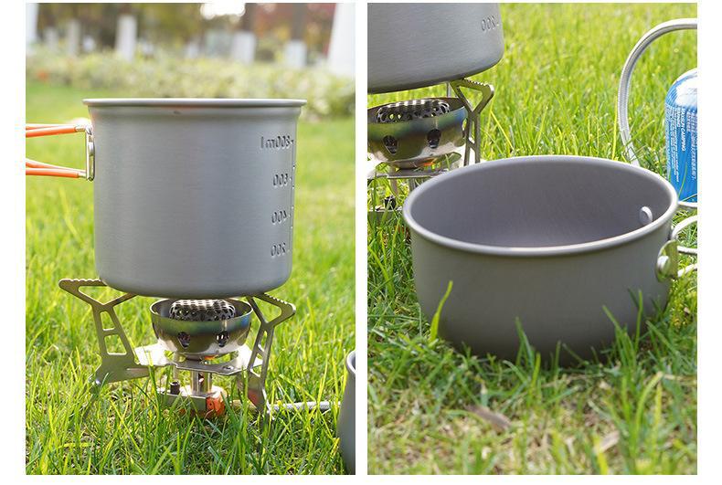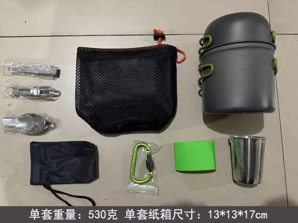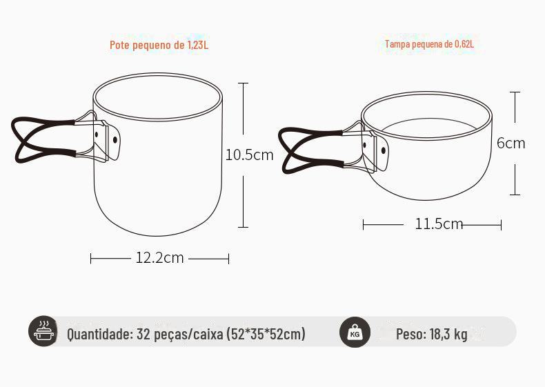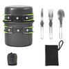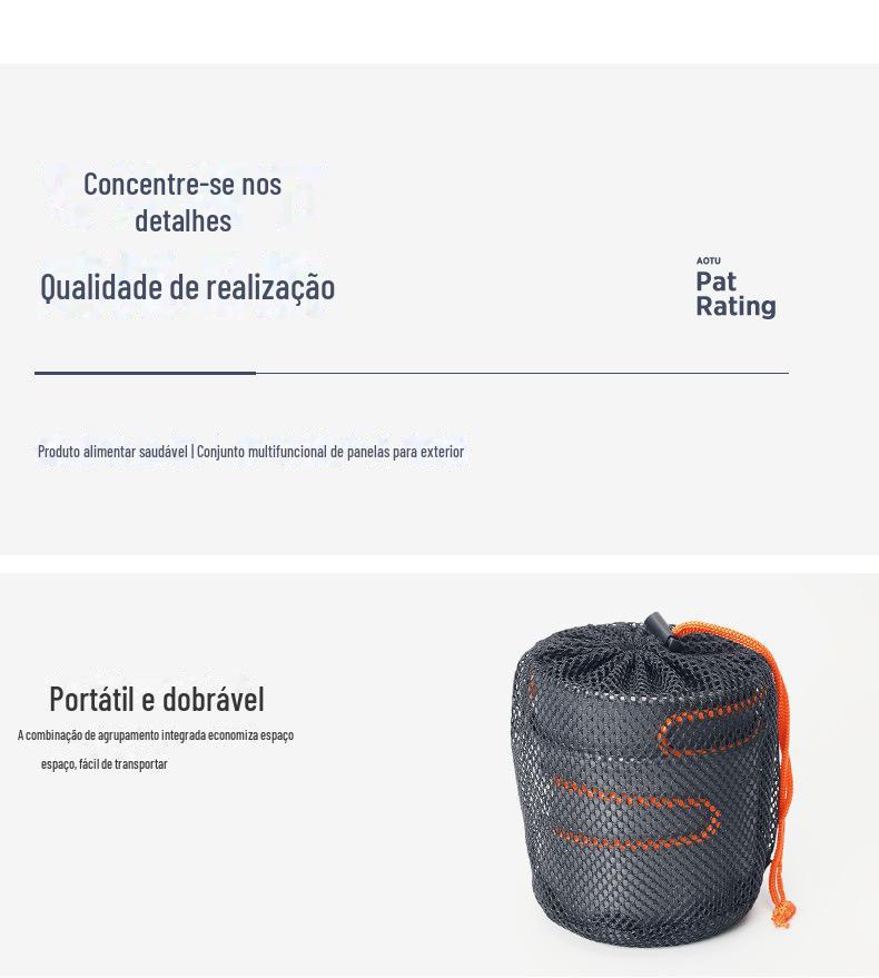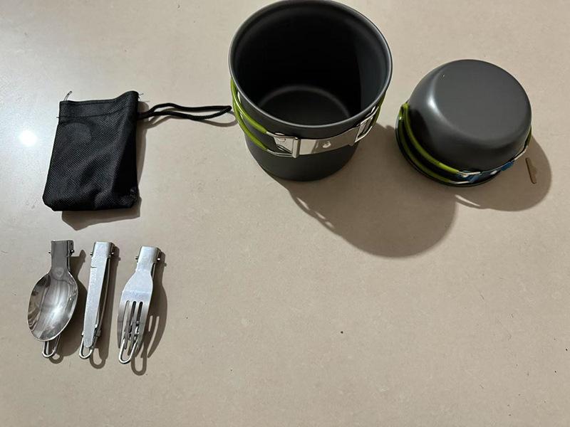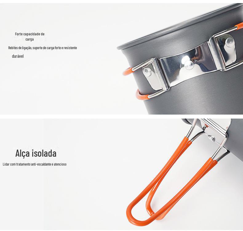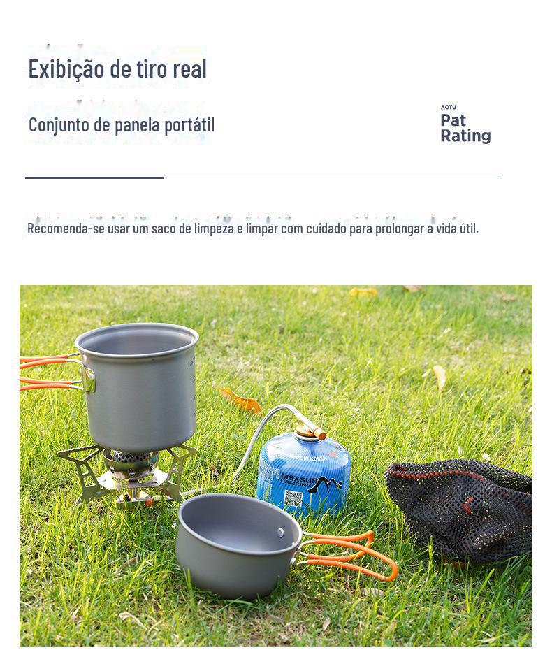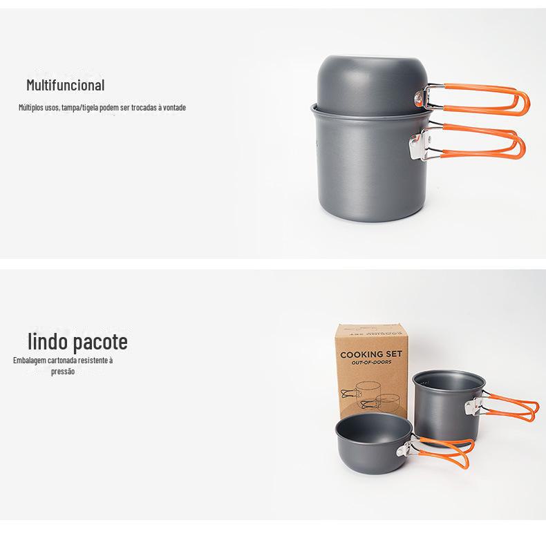 Nome do produto: Conjunto de panela de acampamento + conjunto de três peças de talheres