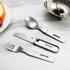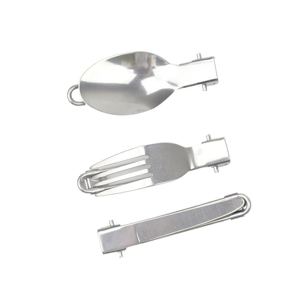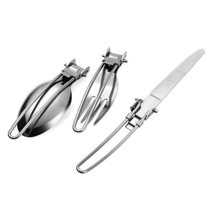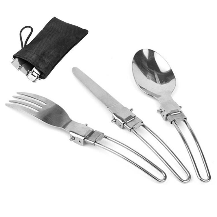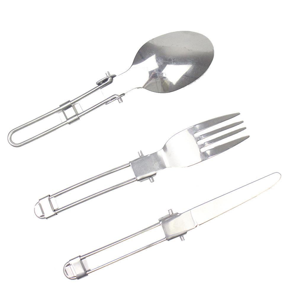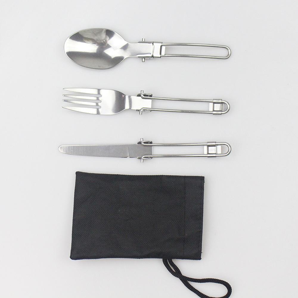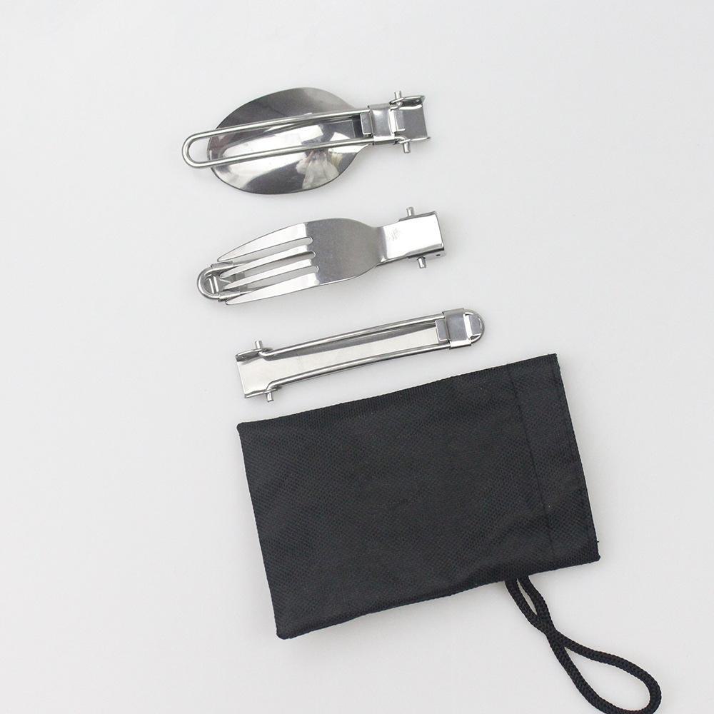 Nome do produto: Conjunto de garfo e colher dobráveis de aço inoxidável para acampamento ao ar livre de três peças