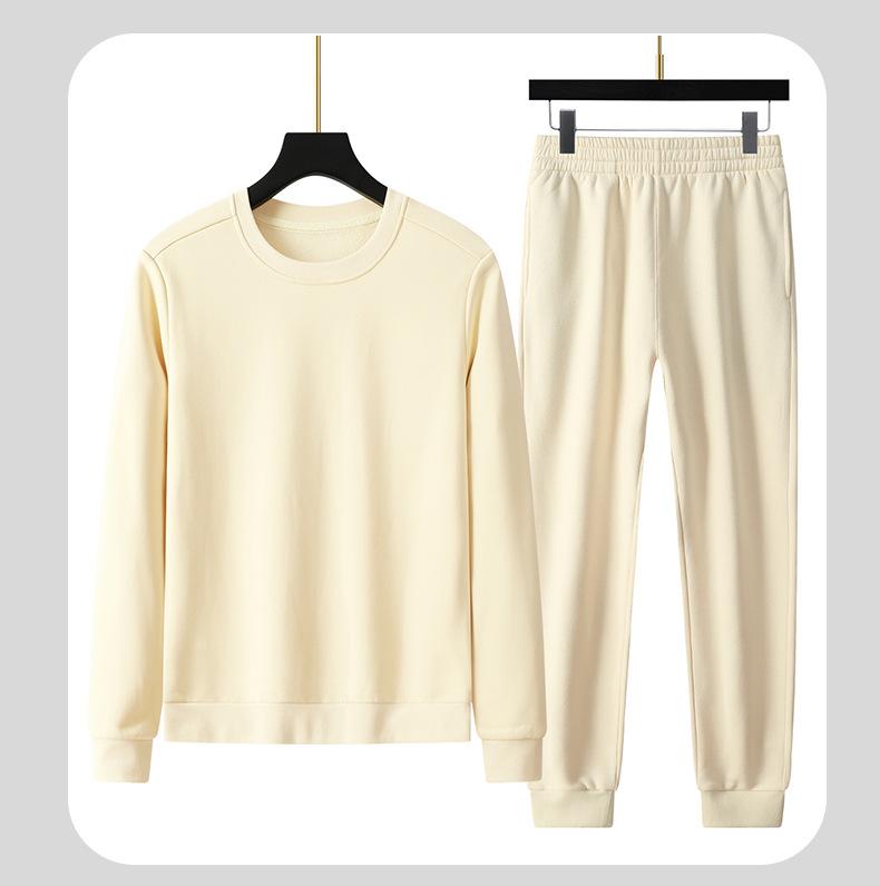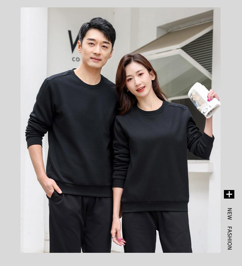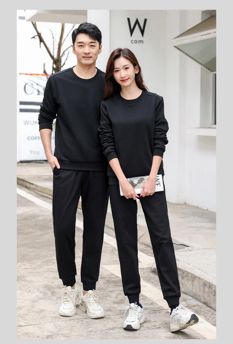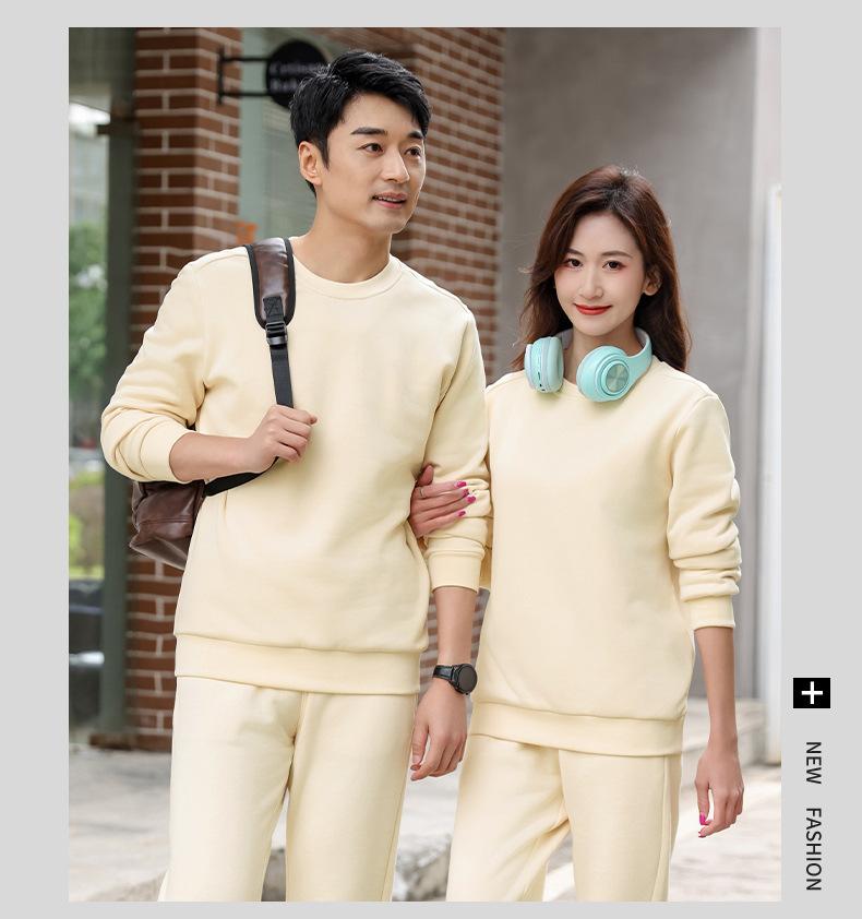 Outono e inverno novo casal casual terno esportivo moda forrado de lã masculino e feminino cor sólida casual calças de moletom conjunto de duas peças