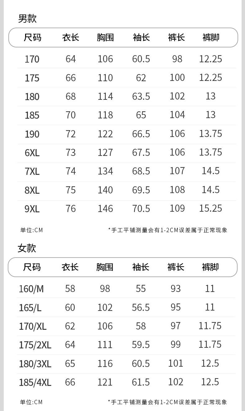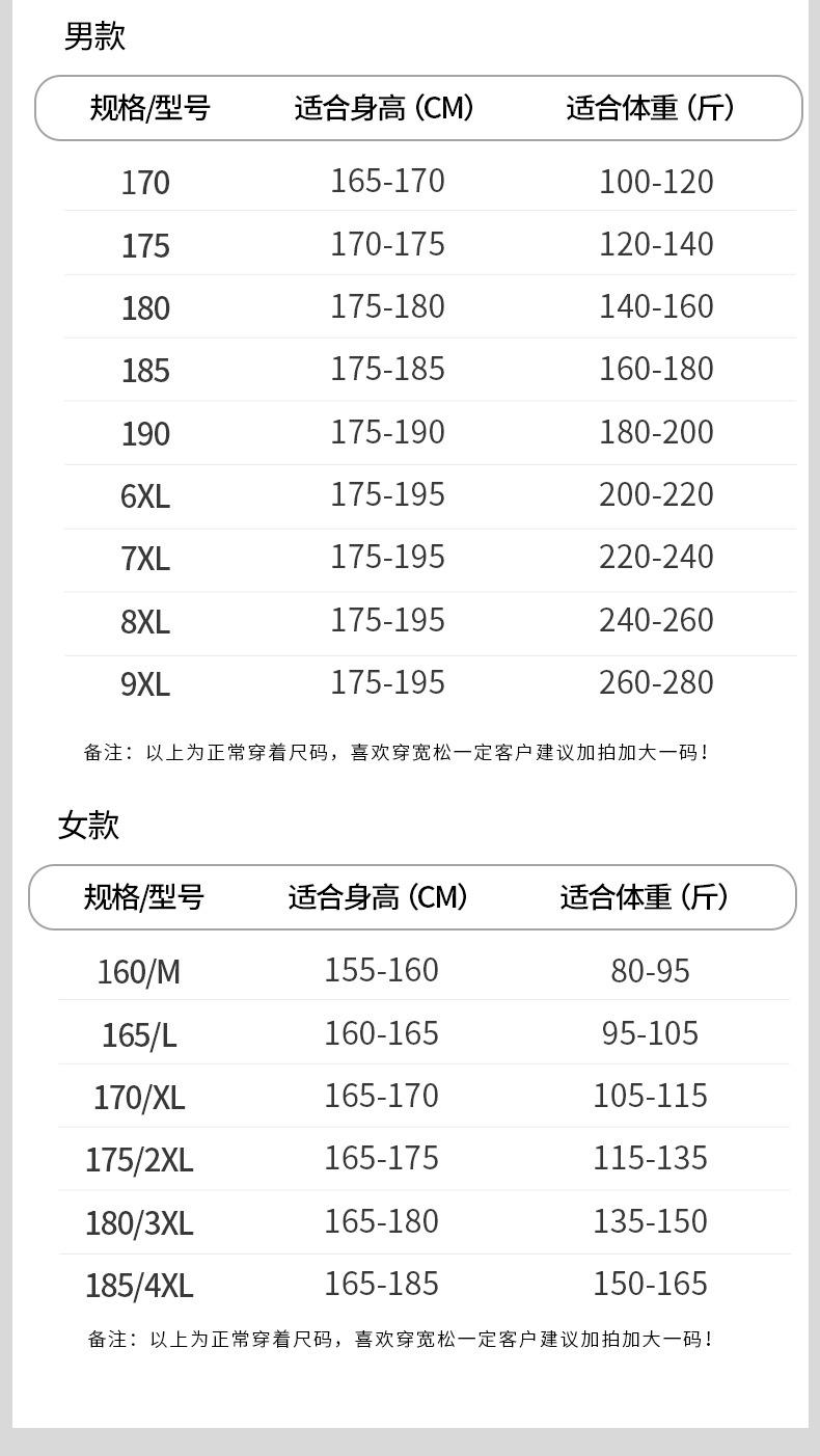 160, 165, 170, 175, 180, 185, 190, 6XL, 7XL, 8XL, 9XL