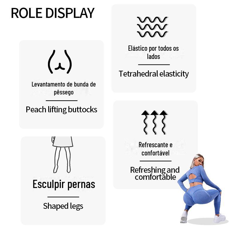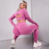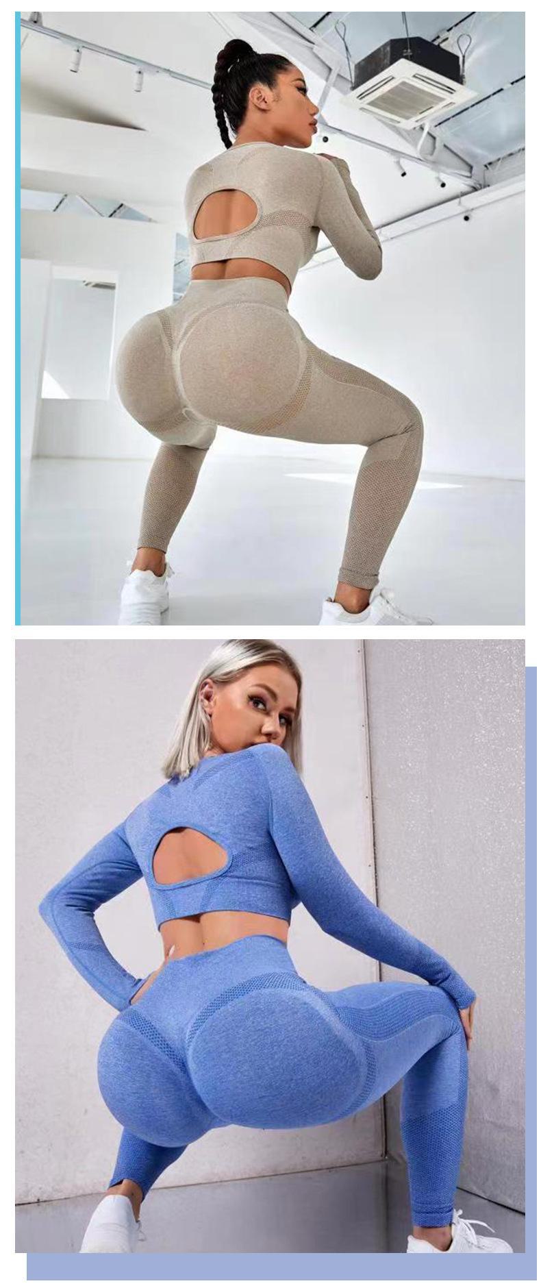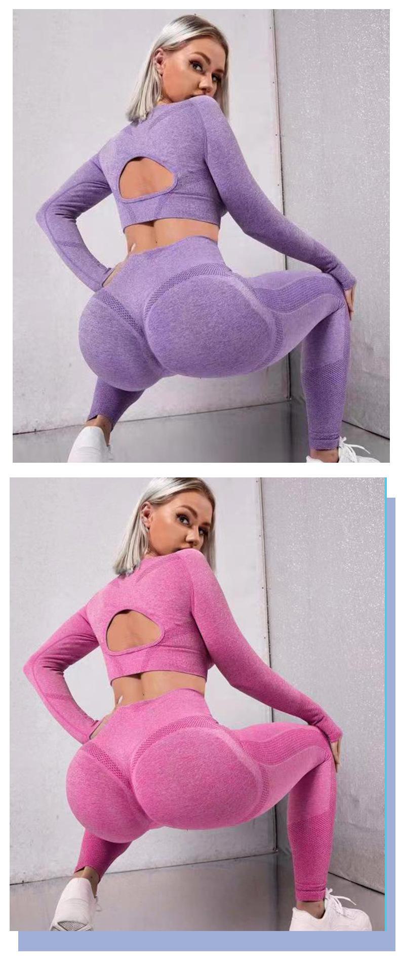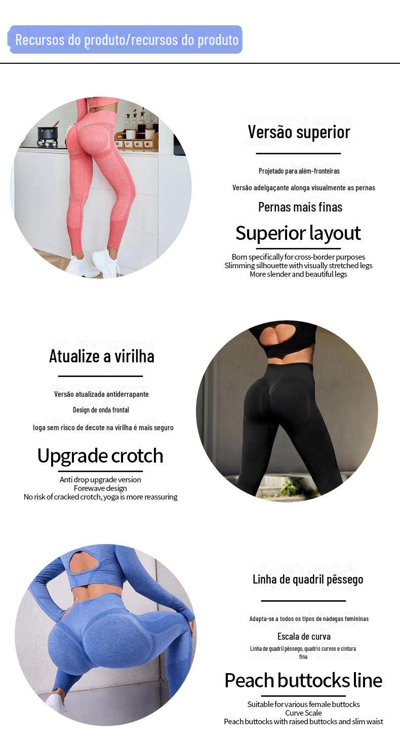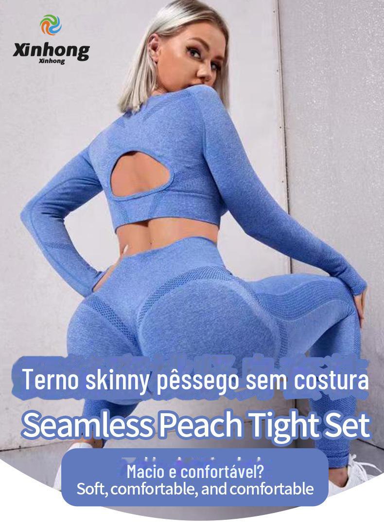 Novo europeu e americano cross-border sem costura cintura alta Pêssego Hip apertado alongamento roupas de ioga terno running fitness conjunto de duas peças para mulheres