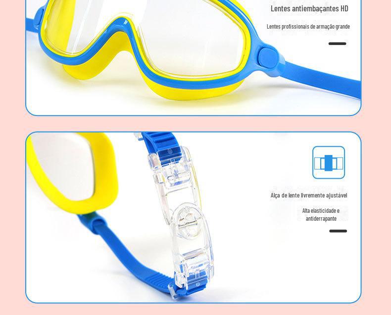 Óculos de natação para crianças, terno à prova d'água, óculos anti-neblina, óculos de mergulho HD de grande armação, equipamento de natação profissional, equipamento de natação