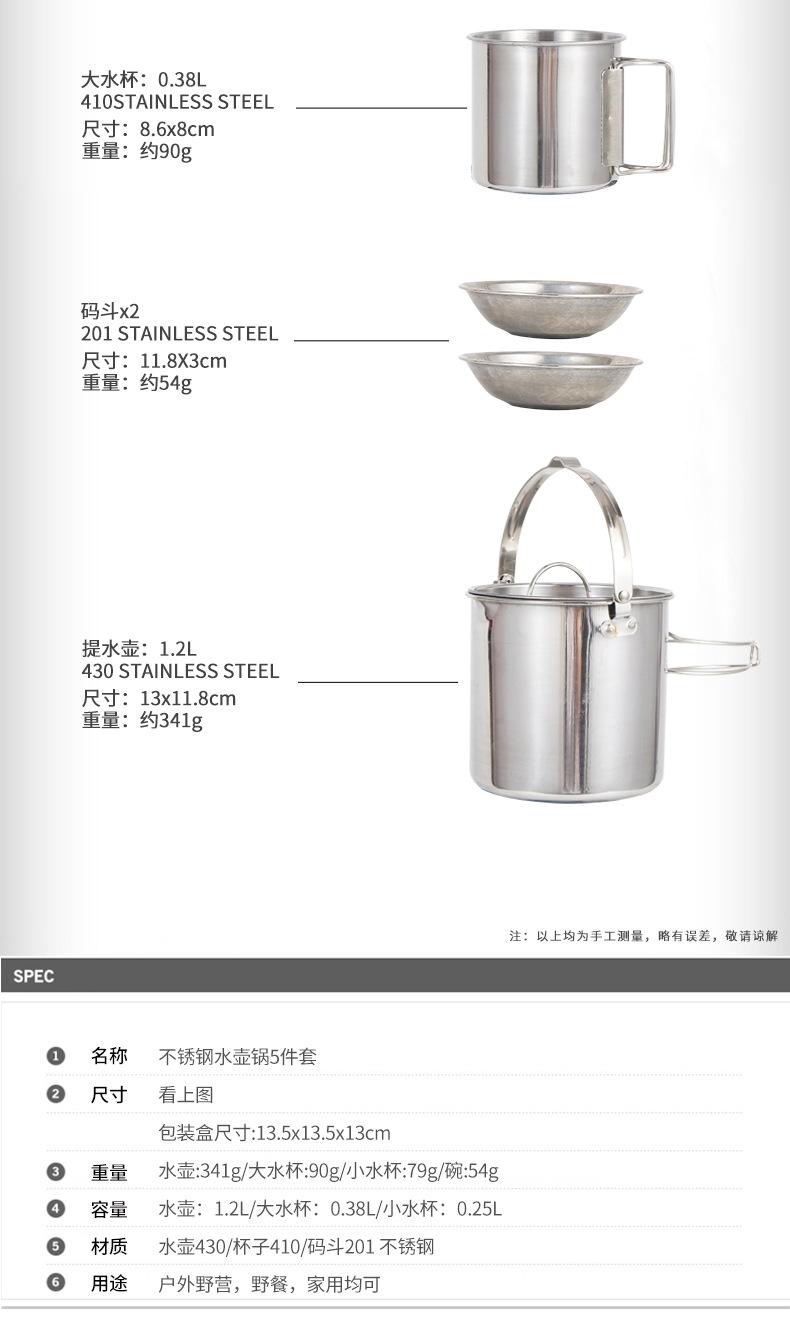 Nome do produto: conjunto de 5 peças de chaleira de aço inoxidável