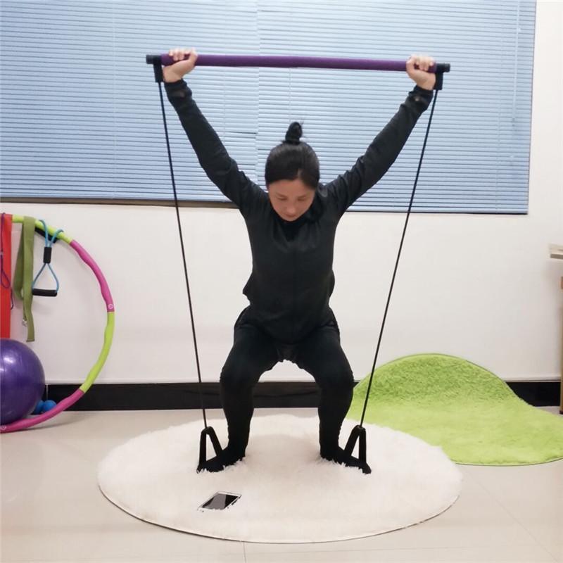 - Inclui barra de Pilates com dois cabos de alimentação de 30" com presilhas para os pés fixadas em cada lado da barra, acompanhamento de DVD de treino de 60 minutos com exercícios bônus de força para a parte superior do corpo