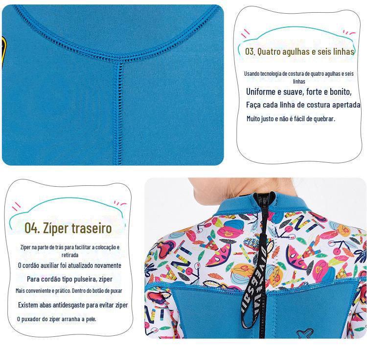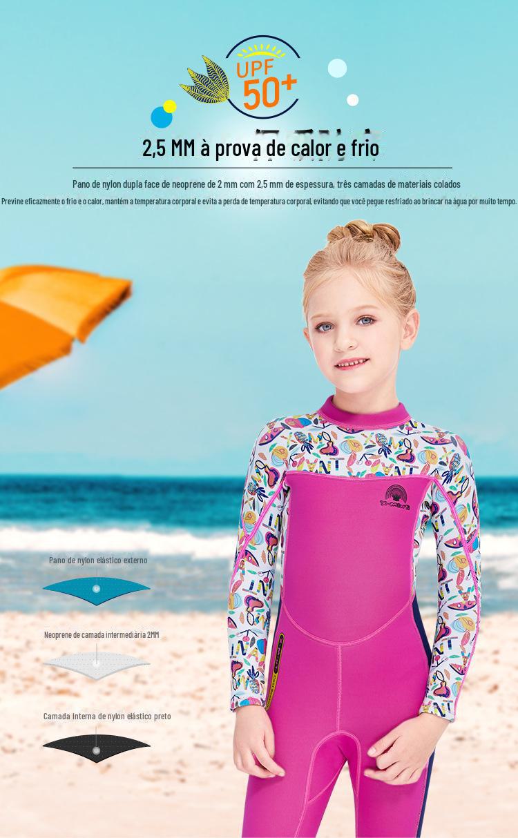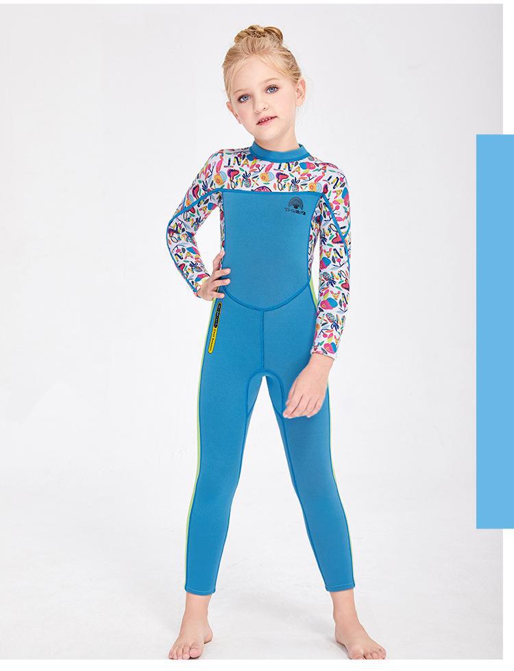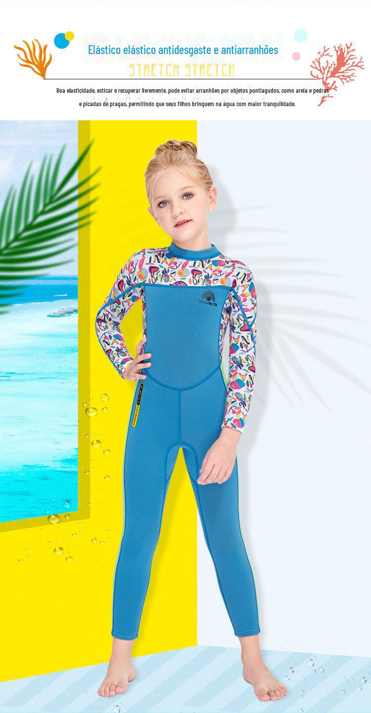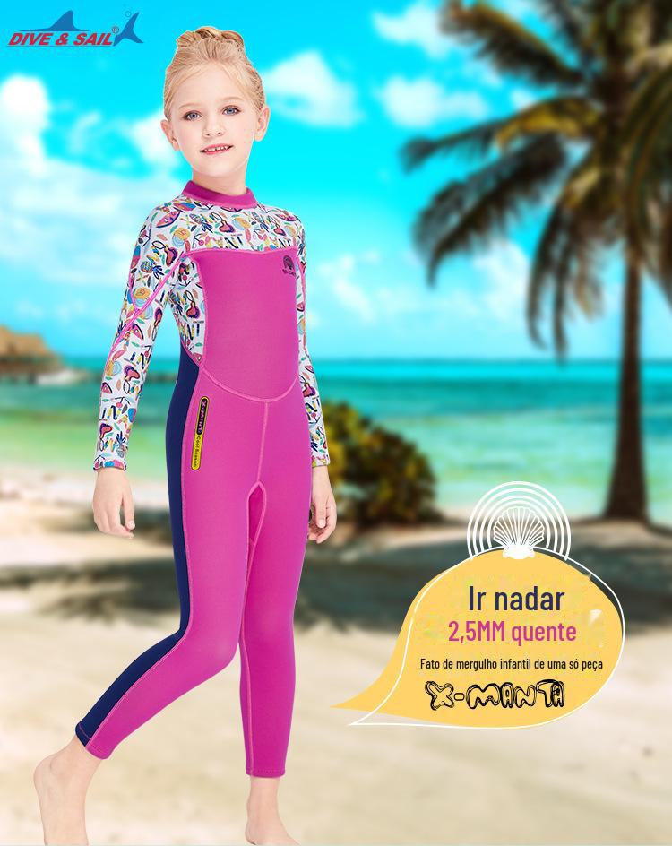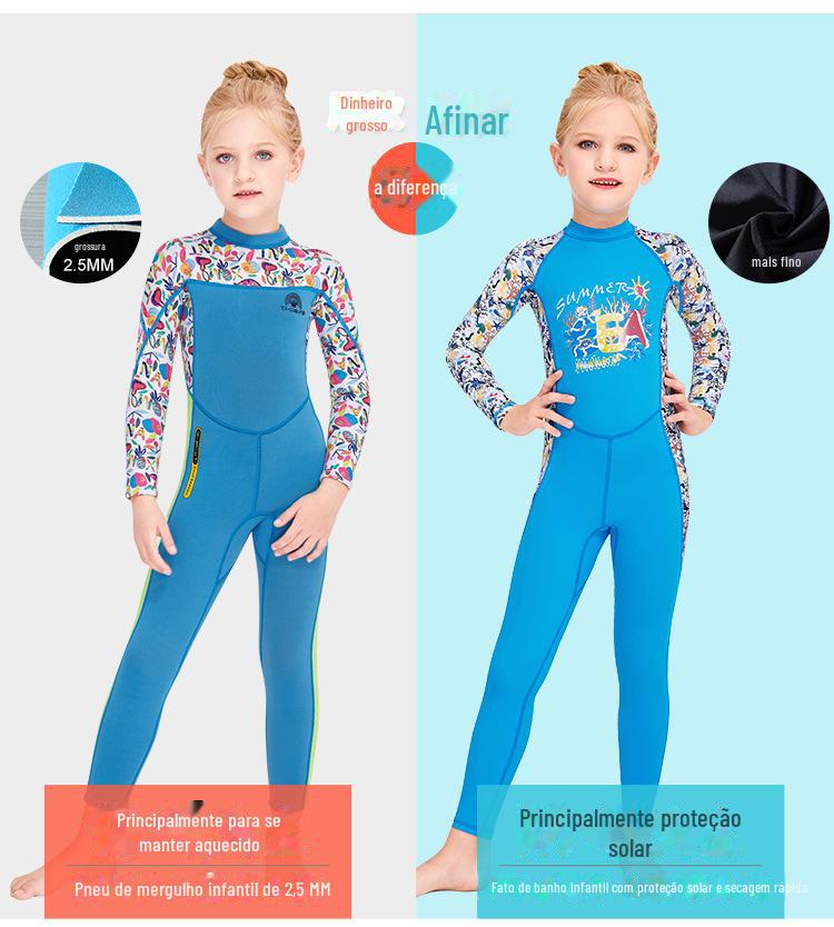 Novo 2,5 milímetros crianças quente terno de mergulho uma peça espessa maiô de manga comprida crianças snorkeling swimsuit