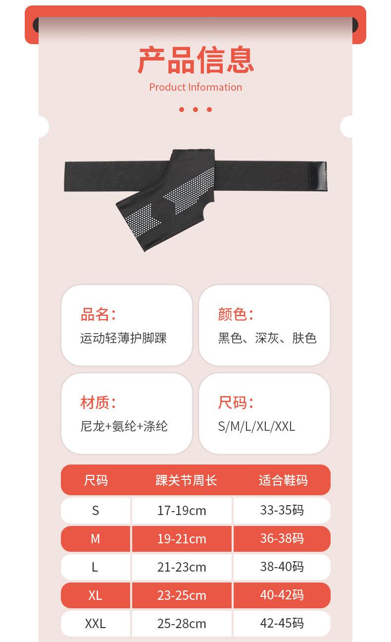 Black M ankle brace (size 33-38), Black L ankle brace (39-43 yards), Black XL ankle protection (over 43 yards)...