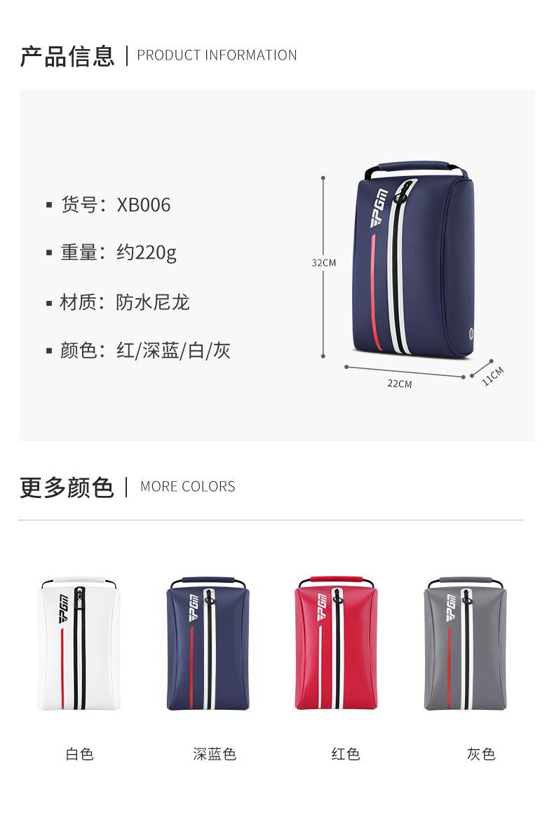 | Descrição do produto | O material de náilon à prova d'água é forte, durável e resistente à sujeira, com grande espaço para armazenamento de sapatos e design simples e portátil | |||