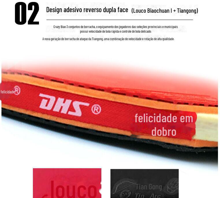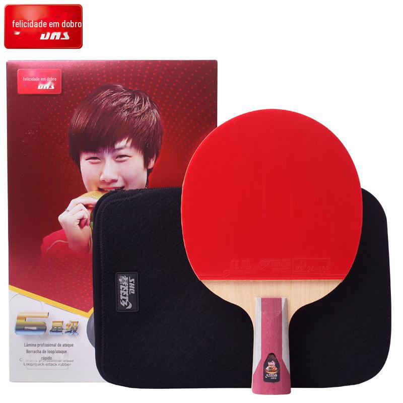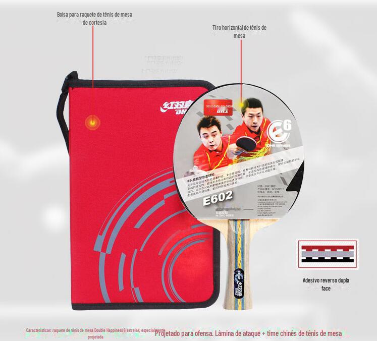 Raquete de tênis de mesa vermelha dupla felicidade T6 estrela 6002 6006 placa reta placa horizontal dupla cola reversa positiva e inversa cola longa raquete terminada única