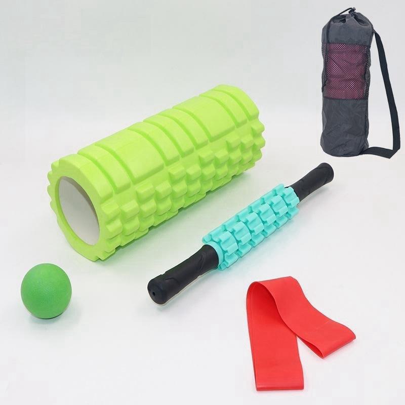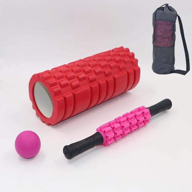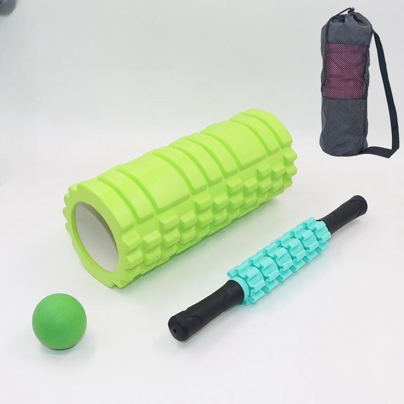Três em um + bolsa de rede: clássico de 33 cm + bastão de massagem de seis marchas + bola de fáscia bola única + bolsa de rede