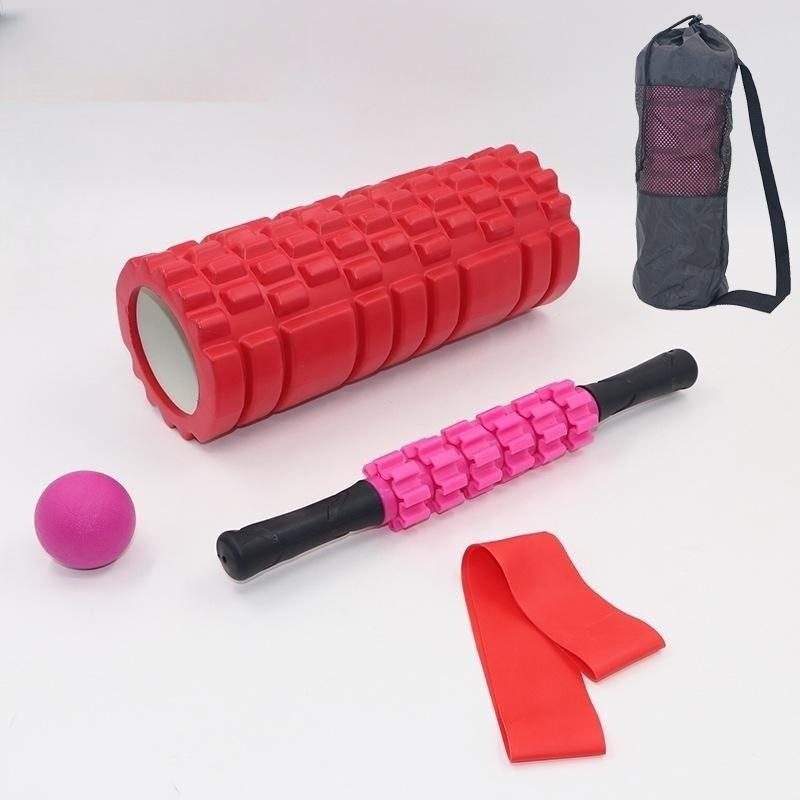 Quatro em um + bolsa de rede: clássico de 33 cm + bastão de massagem de seis marchas + bola de fáscia bola única + anel de tensão vermelho + bolsa de rede