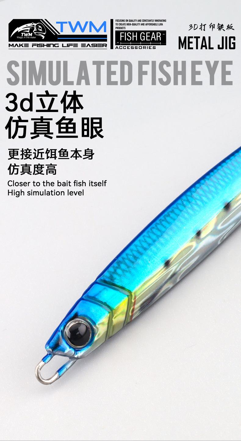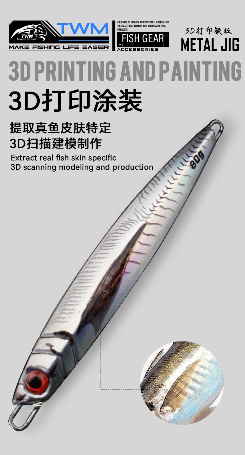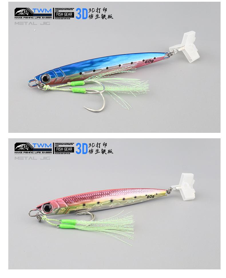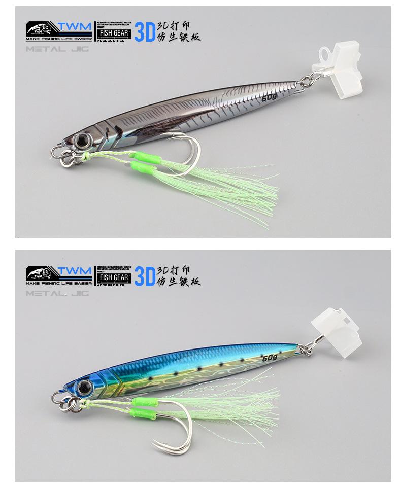 TWM impressão 3D biônica placa de ferro pesca marítima lento sacudindo caindo isca Luya isca falsa isca artificial cavala faca isca barco isca pesca isca