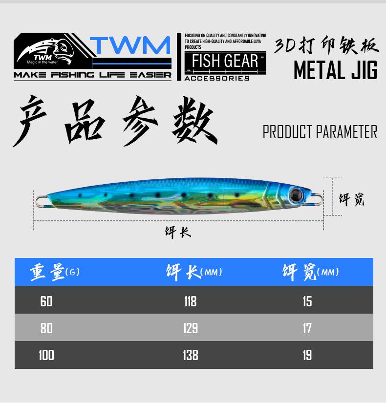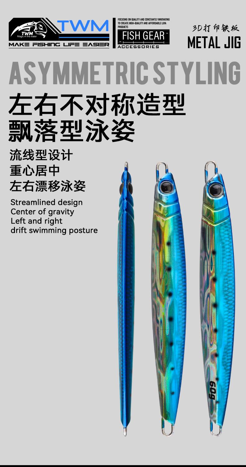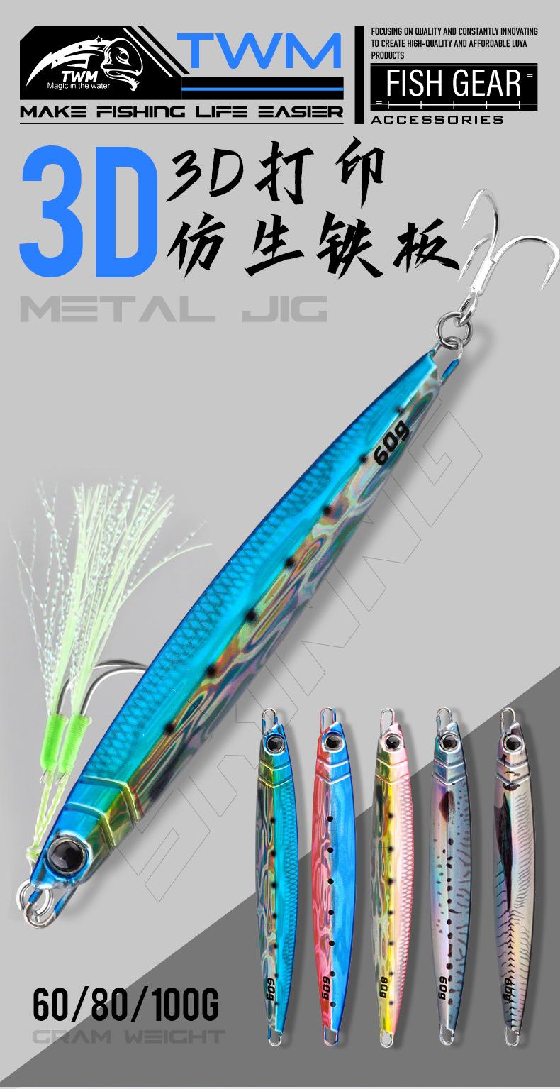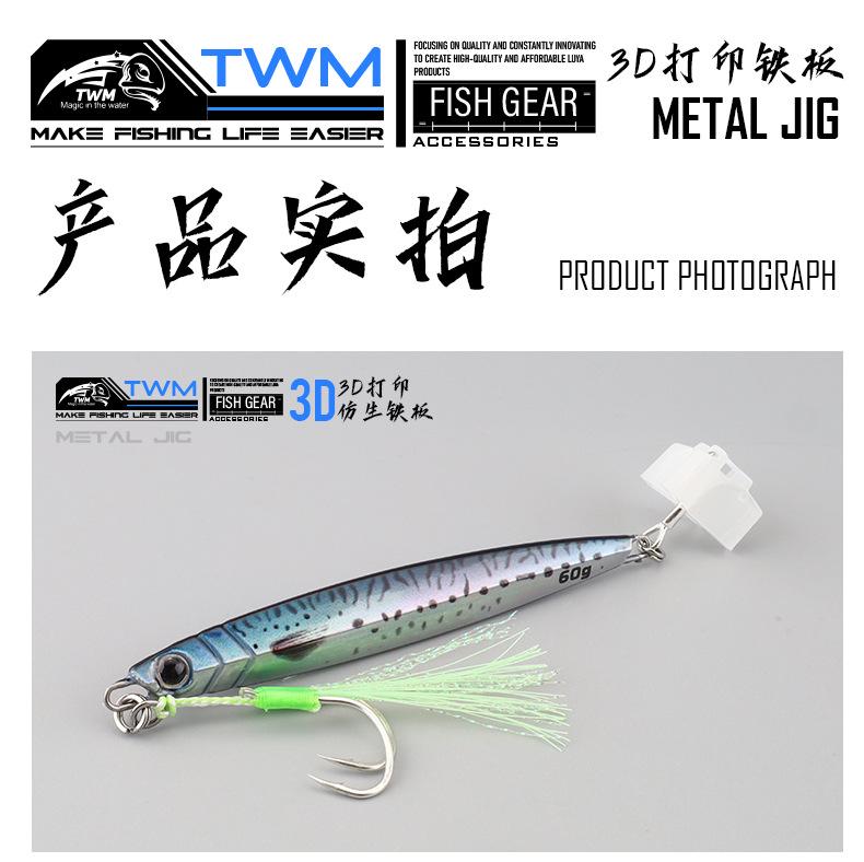 TWM impressão 3D biônica placa de ferro pesca marítima lento sacudindo caindo isca Luya isca falsa isca artificial cavala faca isca barco isca pesca isca