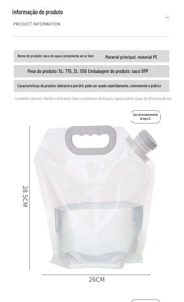 | Peso líquido do produto: | 3L:55g | Embalagem do produto: | Saco de OPP |