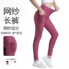 Roupa de Yoga Transfronteiriça Patchwork de Tela Calças de Yoga com Bolso Justas de Cintura Alta Bumbum Pêssego Calças de Fitness para Mulheres Emagrecedoras e Levanta Bumbum