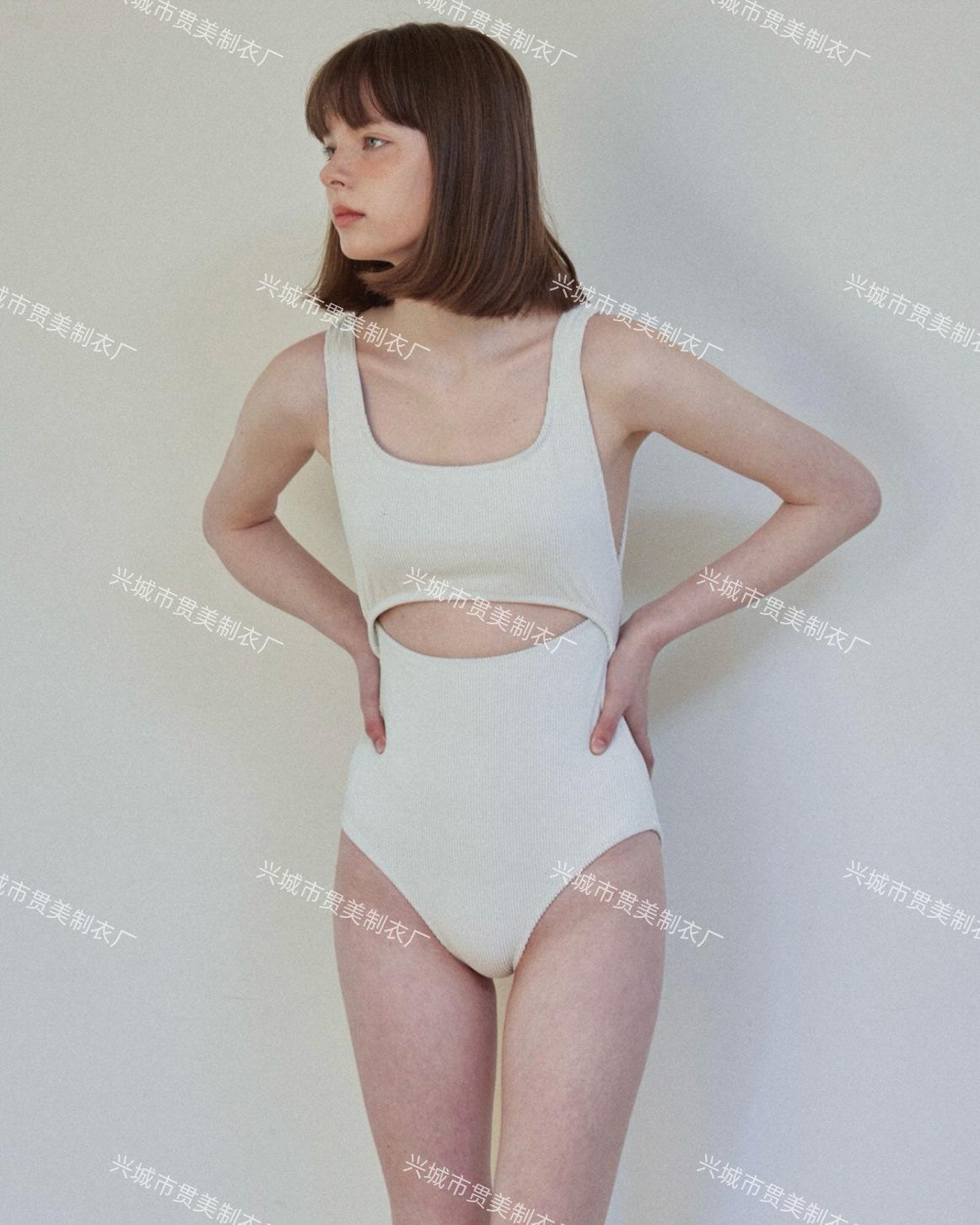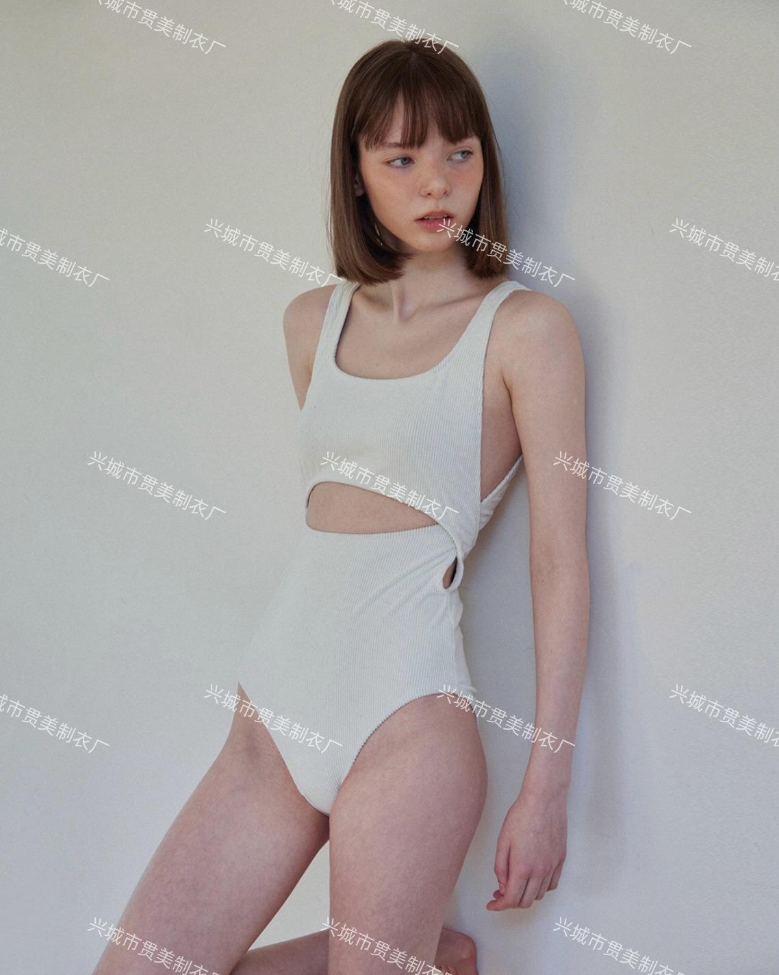 3 cores] Estilo coreano nova cor sólida peito pequeno retro sem encosto personalizado maiô de uma peça para mulheres ins estilo fotografia de férias maiô