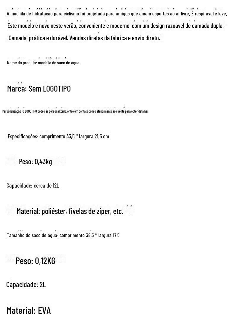 Camping ao ar livre mochila portátil de grande capacidade equitação montanhismo saco de água corrente saco de água saco de água saco de água mochila de equitação