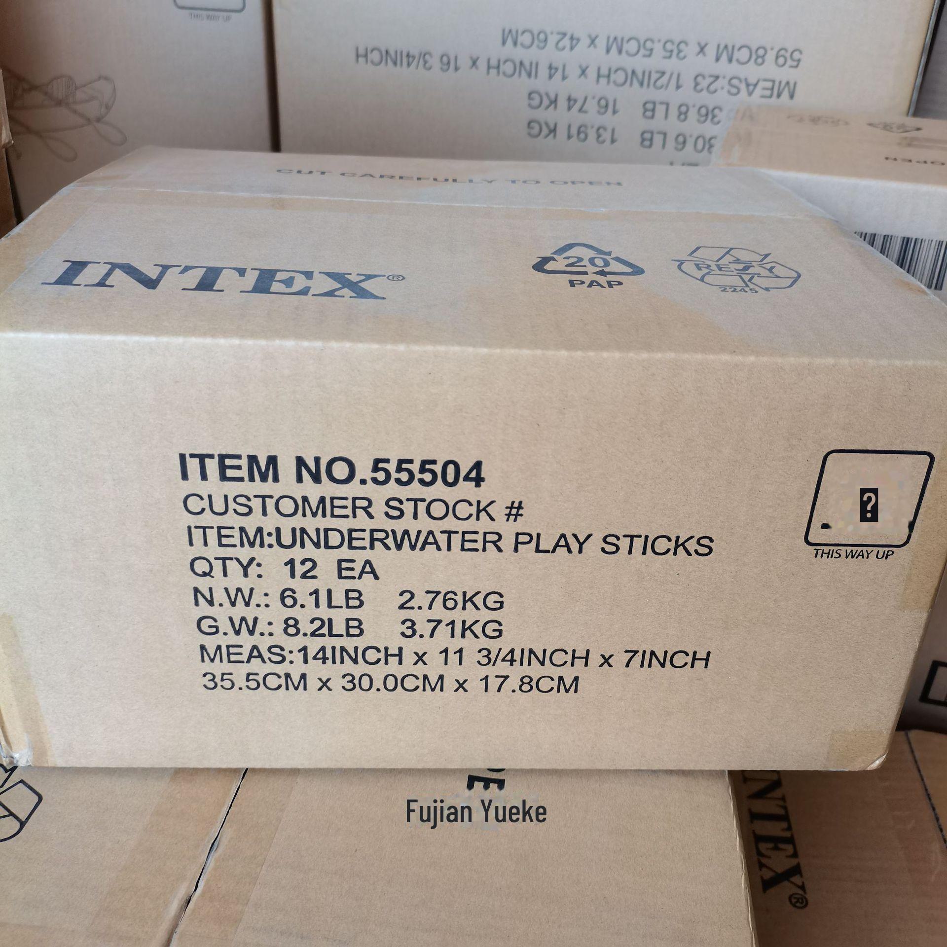 【Nome do produto】 Bastão de mergulho 【Modelo do produto】55504 【Marca do produto】INTEX 【Especificações do produto】 6 anos + [Padrão de fábrica] Vara de mergulho + caixa colorida 【Quantidade de embalagem】12 peças/caixa 【Peso por caixa】3,71 kg 【Volume por caixa】0,019 [Tamanho da caixa externa] 35,5*30*17,8CM [Padrões executivos] Padrão nacional GB-6675; ASTM americana F-963; União Europeia EN-71N-71