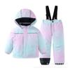 Novo Casaco de Algodão Grosso à Prova de Vento e Impermeável para Inverno Macacão Roupa de Esqui Conjunto de Duas Peças