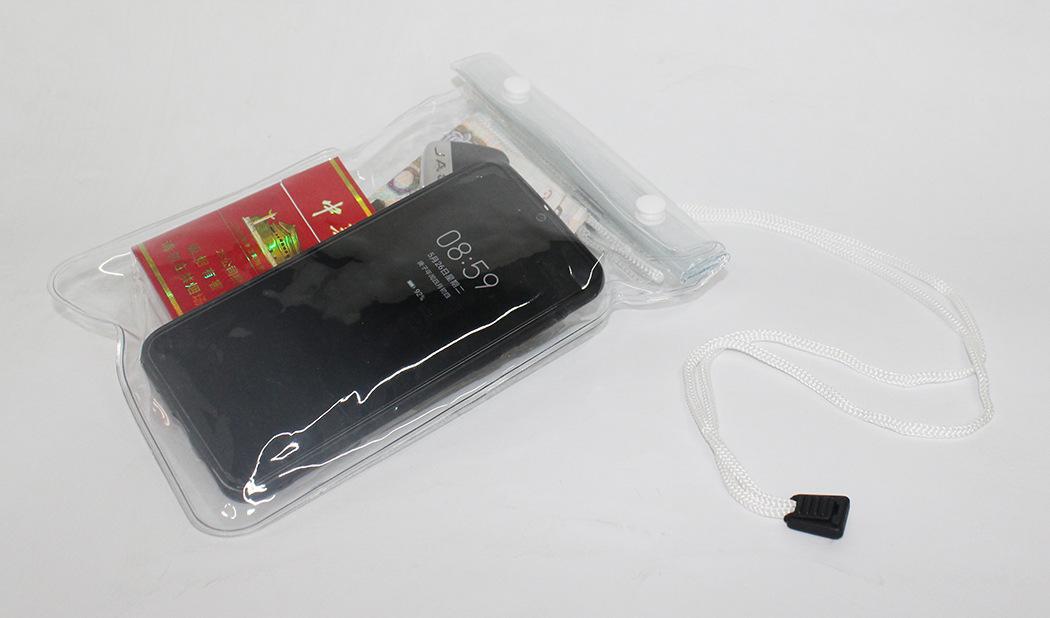 Nota: Certifique-se de que a bolsa impermeável do celular não esteja danificada antes de usar. Antes de entrar na água, coloque um lenço de papel na água para testar o produto antes de colocar dispositivos eletrônicos valiosos. Não toque em objetos pontiagudos para evitar danos ao produto e causar riscos como vazamento de água.