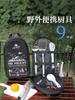 Novo estilo de panelas ao ar livre nove peças conjunto camping churrasqueira de aço inoxidável cortador tábua de corte saco de piquenique louça utensílios de cozinha simples