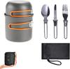 Camping portátil duro Alumina Outdoor Pot Set faca e garfo Bowl conveniente três peças Panela combinação Pot Set