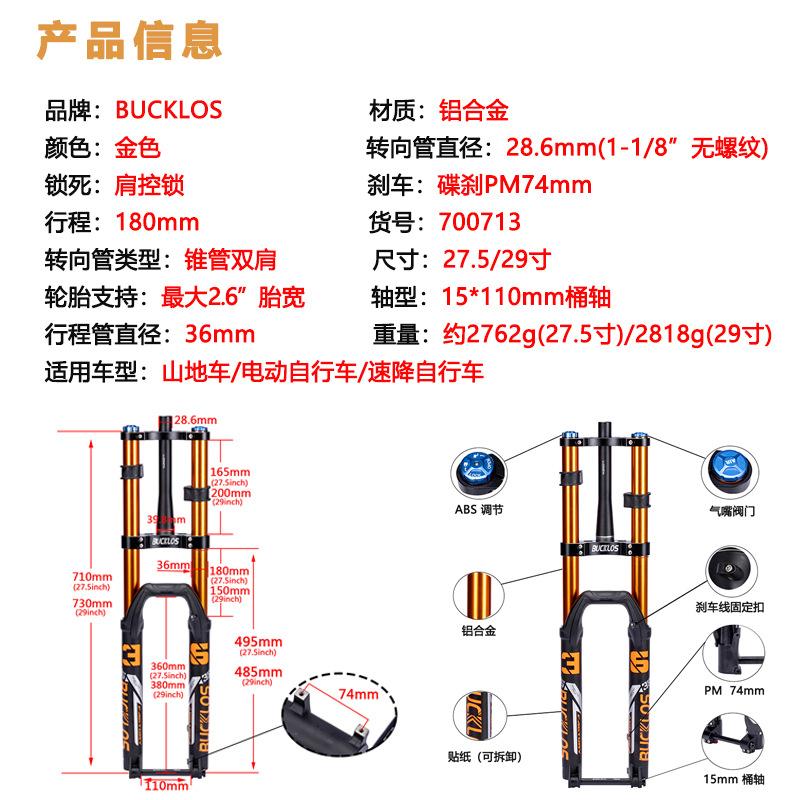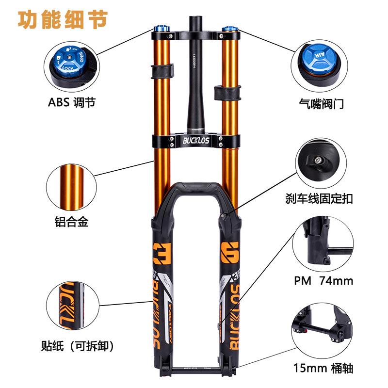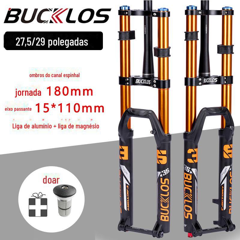 Garfo Dianteiro para Mountain Bike 27.5/ 29 polegadas Dourado Tubo Cônico Ombro Garfo a Ar Eixo Barril Amortecimento Acessórios para Bicicleta