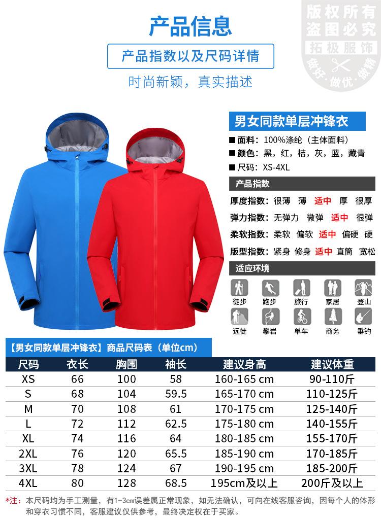 Primavera exterior e outono fina jaqueta de camada única masculina e feminina jaqueta impermeável montanhismo de manga comprida logotipo impresso