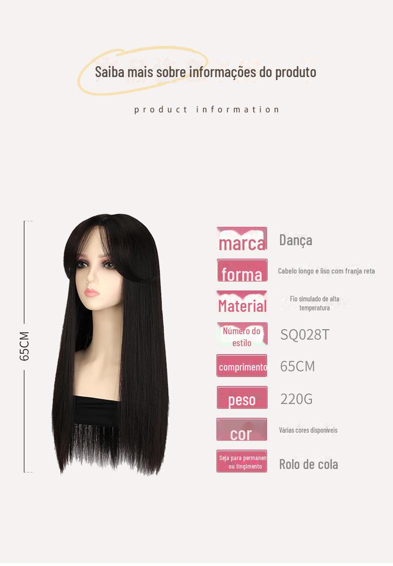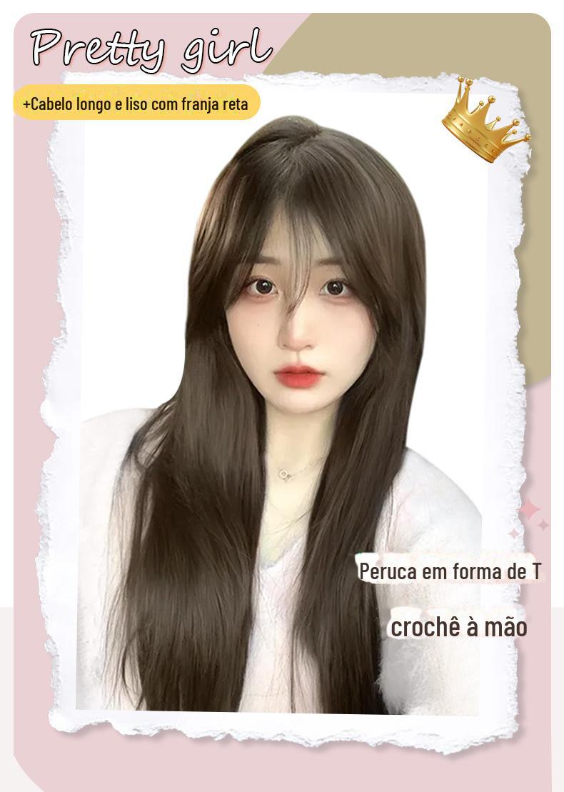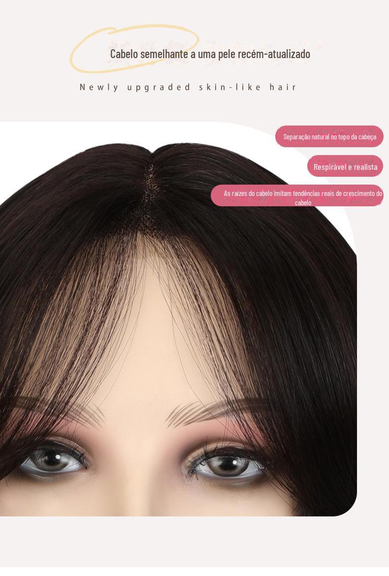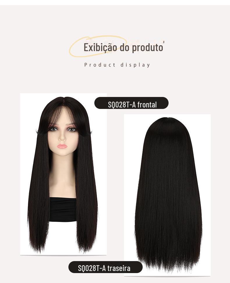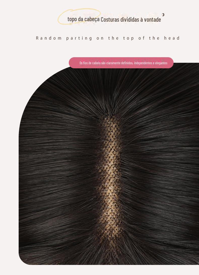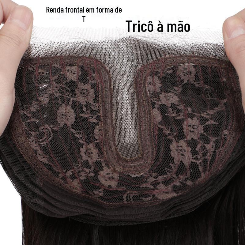 Peruca Feminina Cabeça Completa Capa Tecida à Mão em forma de T Frente Lace Traceless Mid-character Bangs Natural Cabelo Liso Longo Completo Top Hair Cover