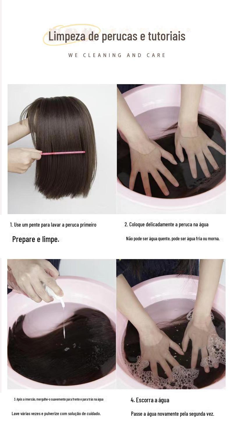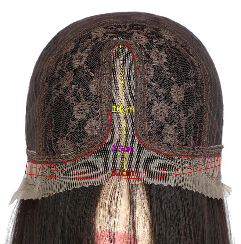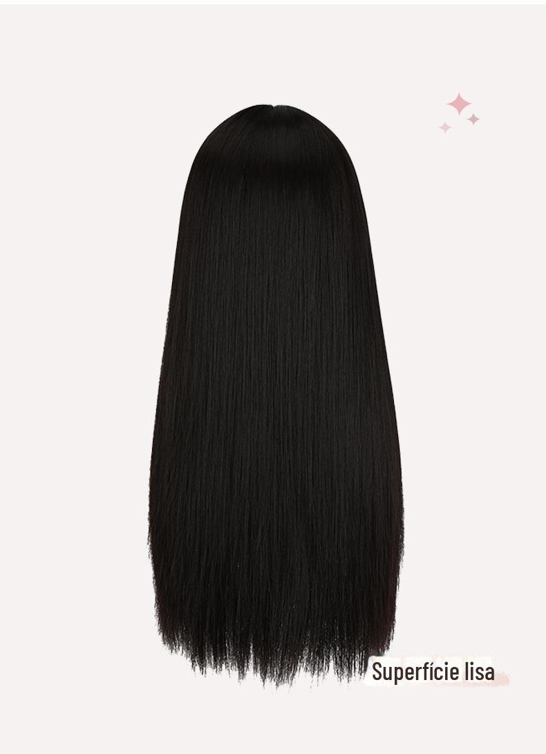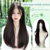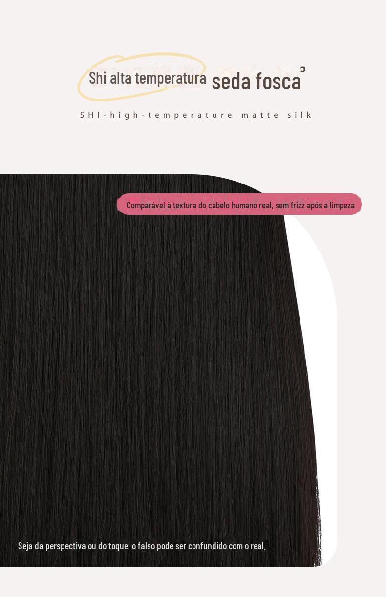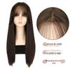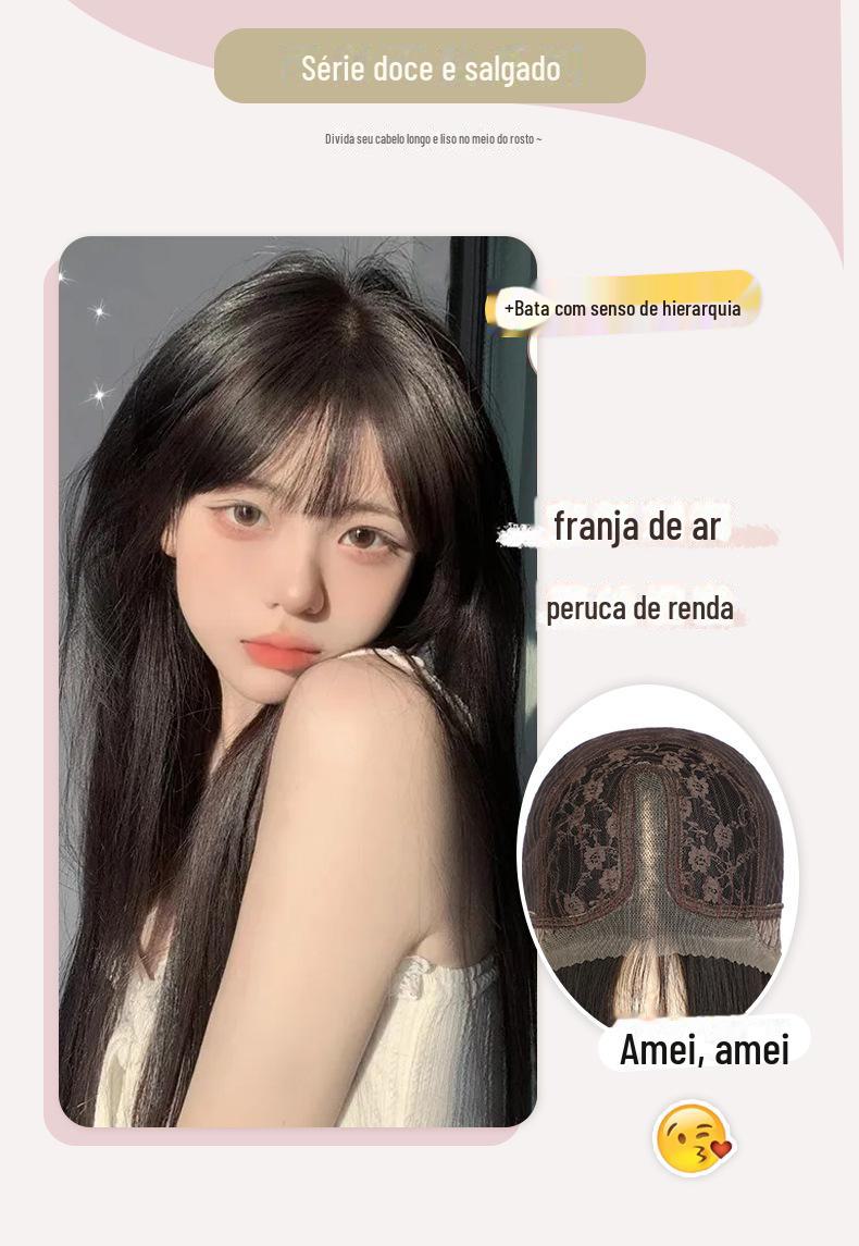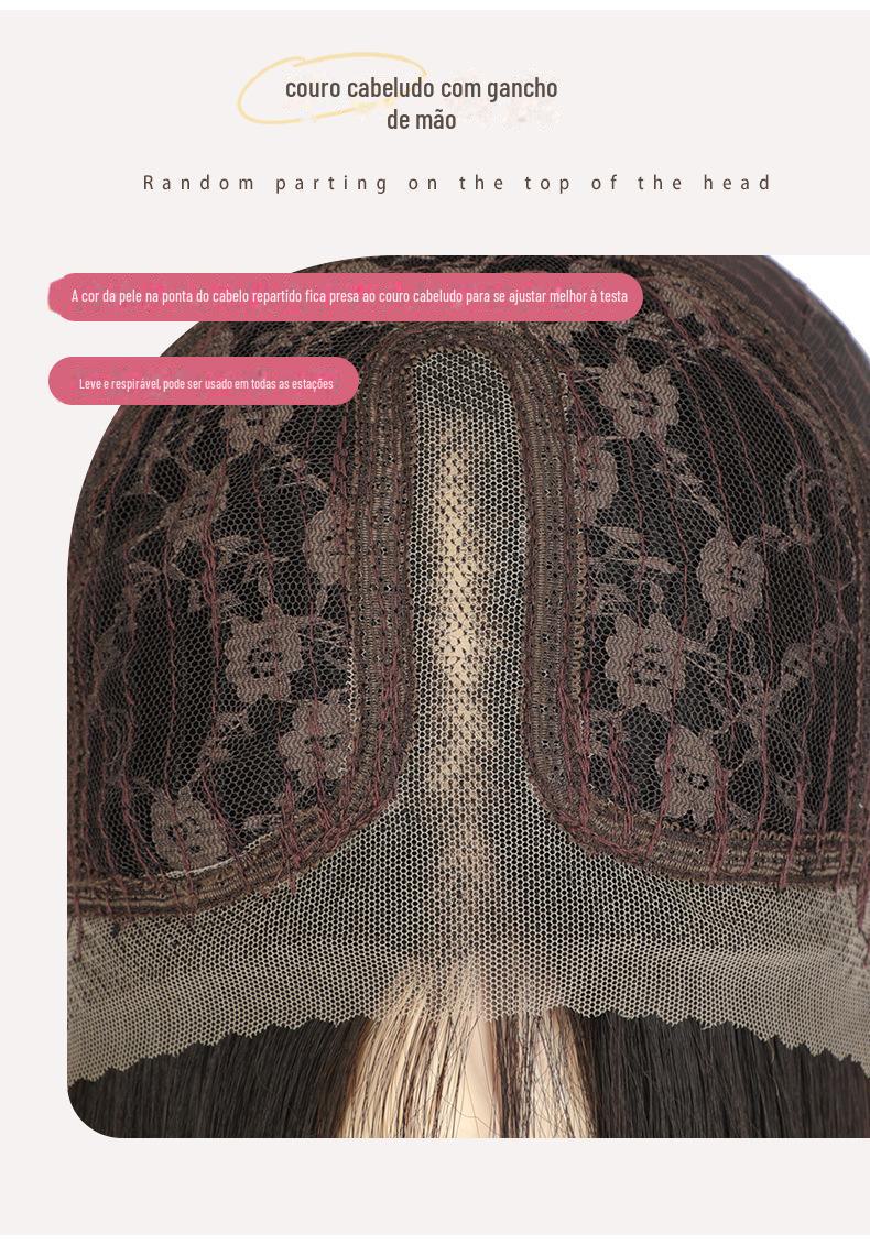 Peruca Feminina Cabeça Completa Capa Tecida à Mão em forma de T Frente Lace Traceless Mid-character Bangs Natural Cabelo Liso Longo Completo Top Hair Cover