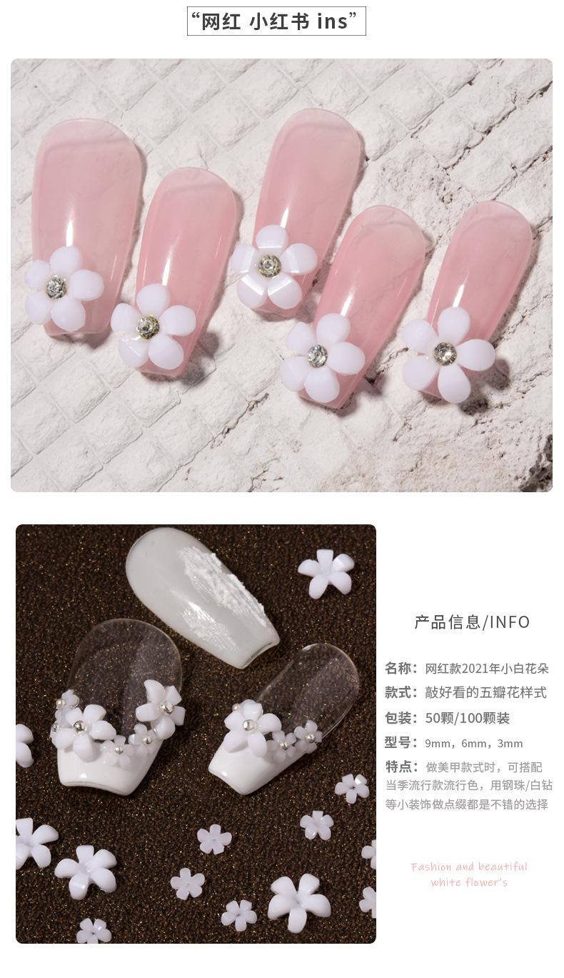 Compre Decorações de Nail Art de Flor de Cinco Pétalas, Decorações de Unha de Florzinha 3D de Resina Branca, Acessórios Frescos para Manicures Francesas no atacado no Joom.pro